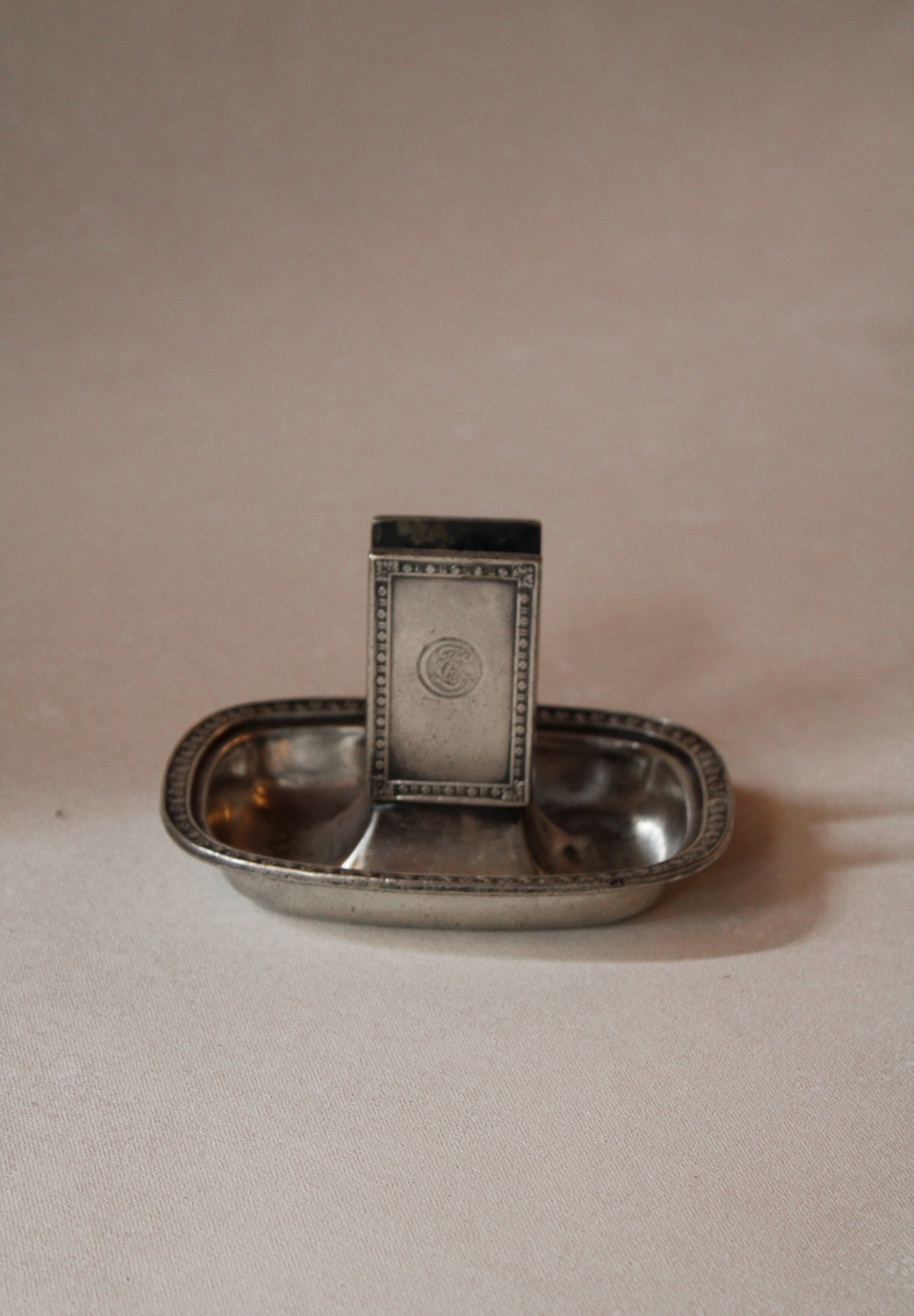 Discover a piece of history with the 1926 Silver Plated Match Holder, originally from the iconic Breakers Hotel in Palm Beach, Florida. This exquisite accessory showcases elegant craftsmanship with its gleaming silver-plated finish and timeless design. Perfectly sized to hold matches securely, it adds a touch of vintage sophistication to any setting, whether displayed as a collector’s item or used functionally. A refined reminder of classic luxury, this match holder brings a distinguished charm and historical allure to your collection or home décor.