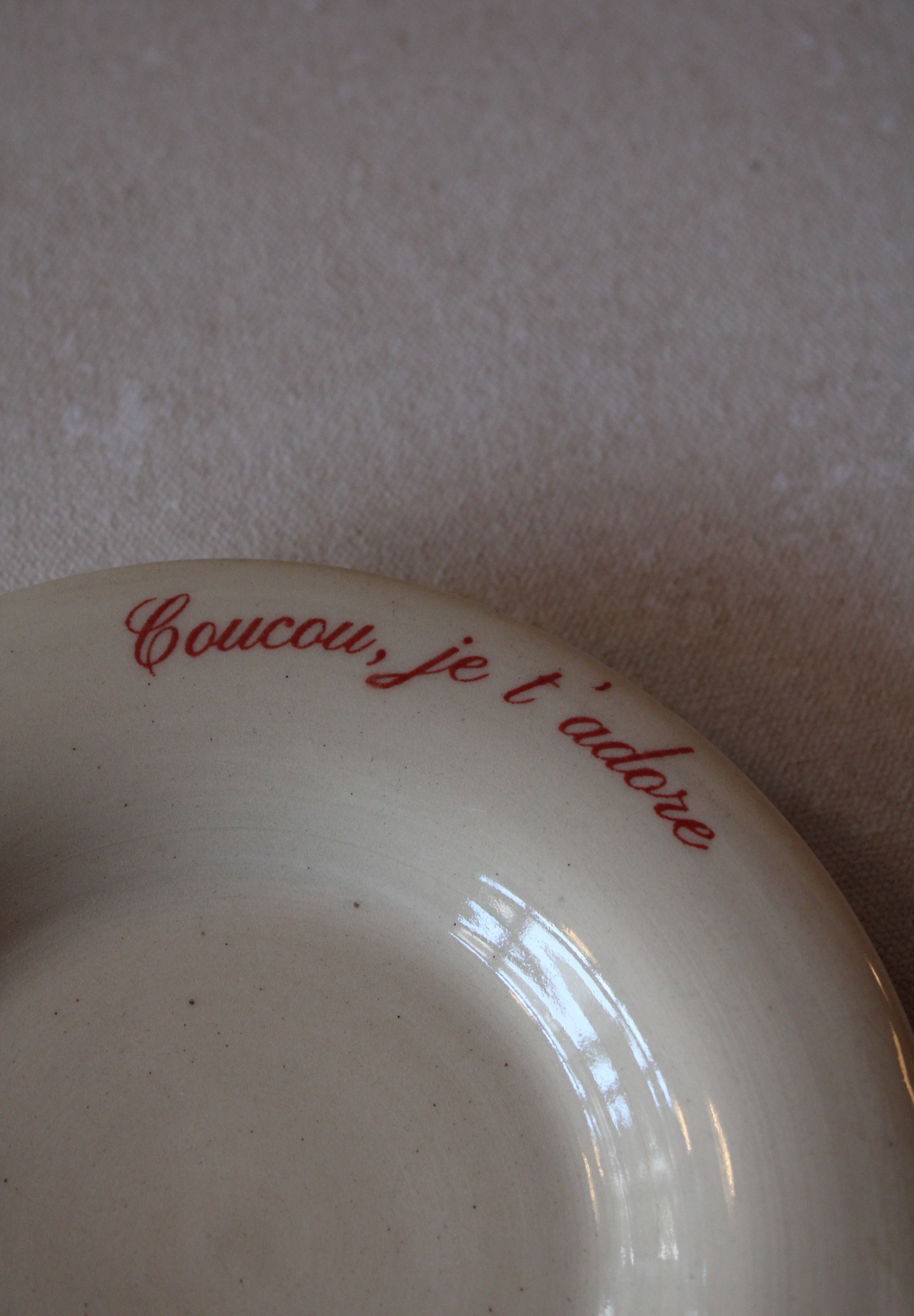 The Coucou, Je T'Adore Ceramic Tray, meaning "Hello I adore you," beautifully captures a message of affection with refined elegance. Crafted from high-quality ceramic, this tray features a smooth, polished surface that exudes sophistication. Its timeless design makes it perfect for displaying cherished jewelry, perfumes, or small decor items, elevating your living space with a touch of warmth and style. Whether placed on a vanity, dresser, or entryway table, this tray invites moments of admiration and love, blending functionality with heartfelt expression seamlessly.