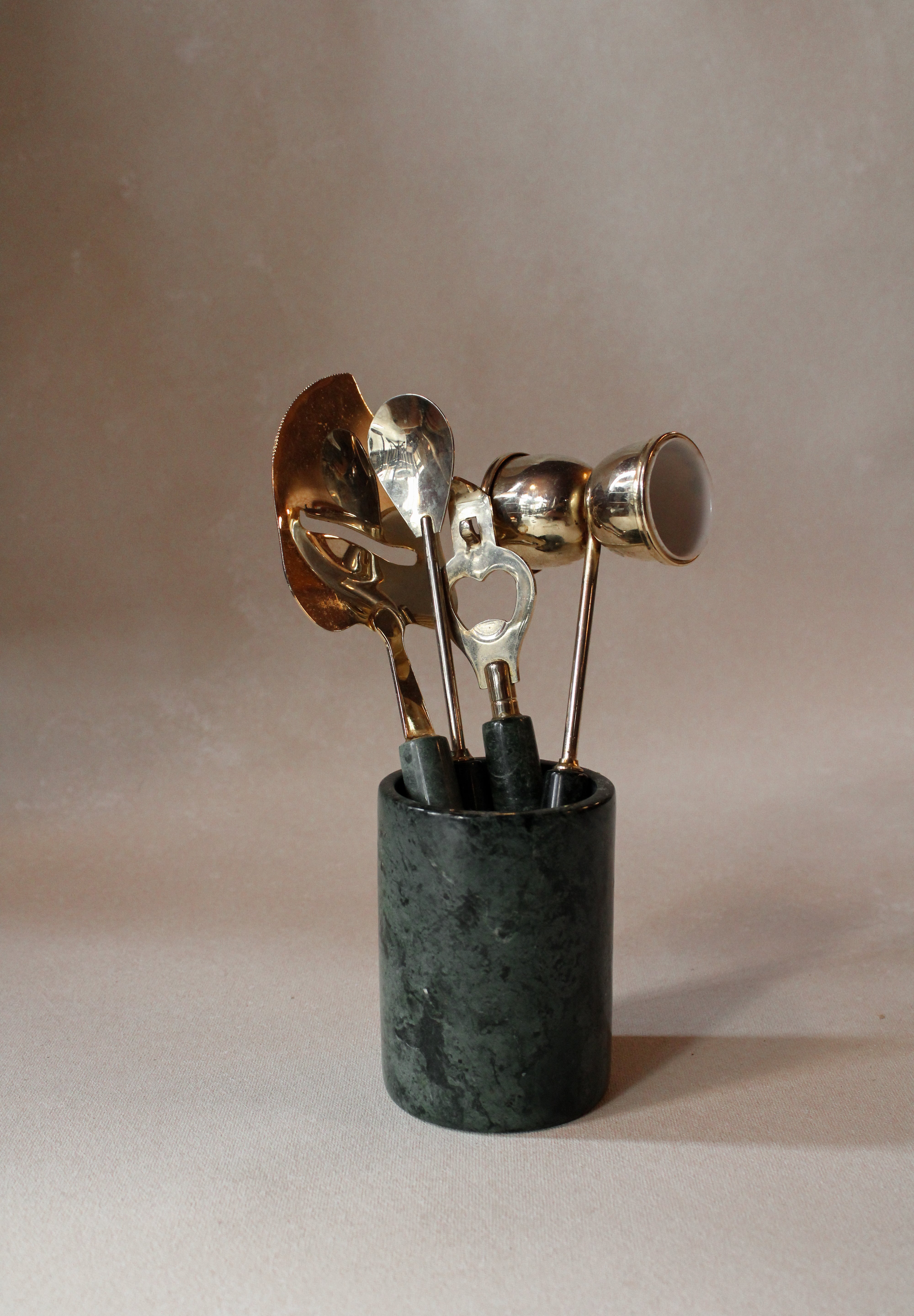 Elevate your home entertaining with the Green Marble Barware Set, a stunning fusion of natural elegance and contemporary design. Crafted from exquisite green marble, each piece showcases unique veining, making your bar setup truly one-of-a-kind. This sophisticated set not only enhances the aesthetic of your space but also provides durable, functional tools for mixing and serving cocktails with style. Perfect for intimate gatherings or lavish celebrations, the Green Marble Barware Set brings a refined touch of luxury to every occasion.