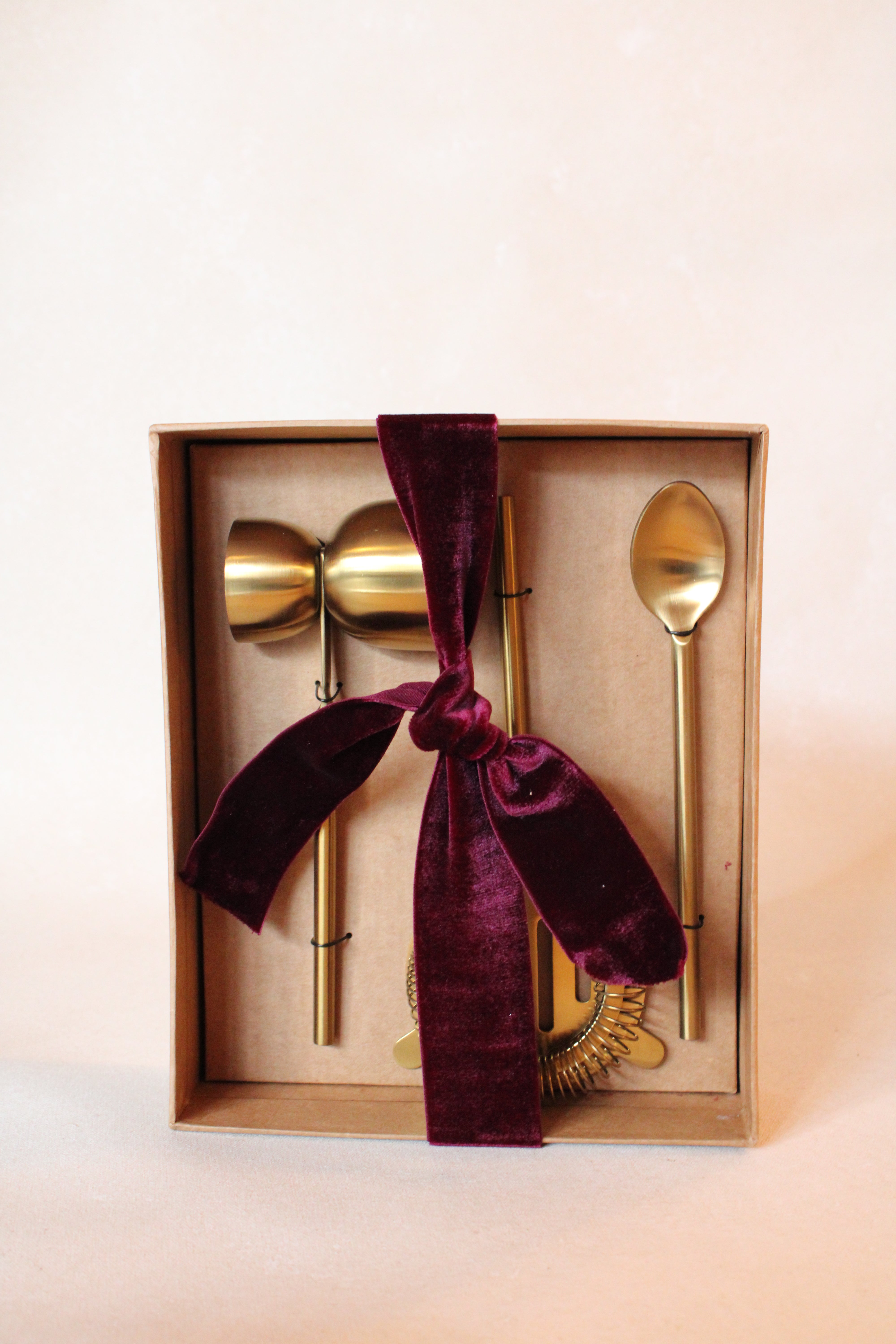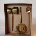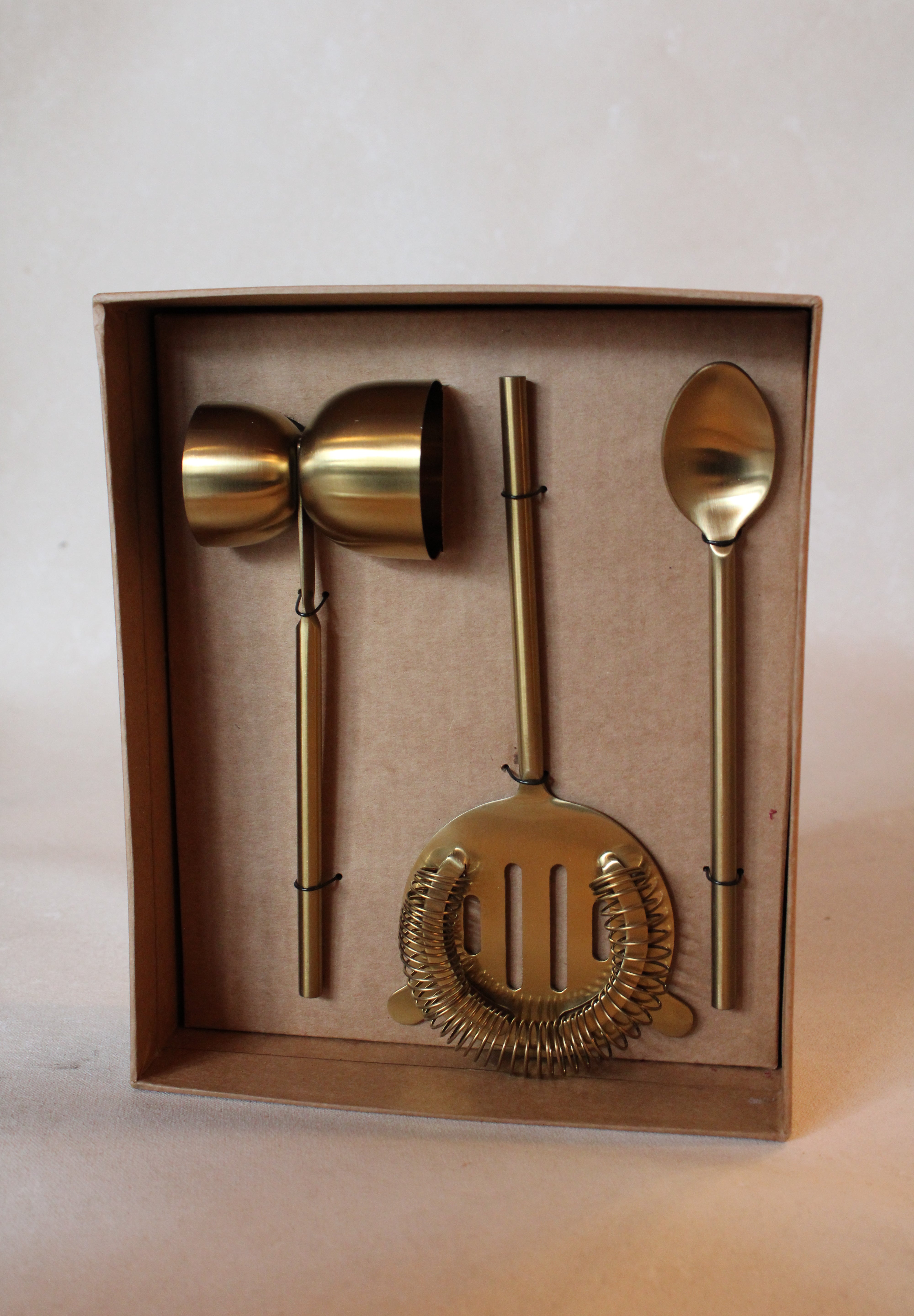 Elevate your home bar with the Matte Gold Bar Tools Set, a curated collection of three essential implements crafted from premium stainless steel. The sophisticated matte gold finish strikes a refined balance between understated elegance and contemporary allure, transforming your bar cart into a statement of refined taste. Each tool is engineered for precision and comfort, enabling you to craft cocktails with the finesse of a seasoned mixologist. Presented in giftable packaging, this set makes an exceptional present for the discerning entertainer or cocktail enthusiast. The durable construction ensures years of reliable service, while the dishwasher-safe design offers convenient cleanup. For optimal longevity and luster, hand washing with non-citrus detergent is recommended, preserving the distinctive matte gold aesthetic that distinguishes this collection from ordinary bar accessories.