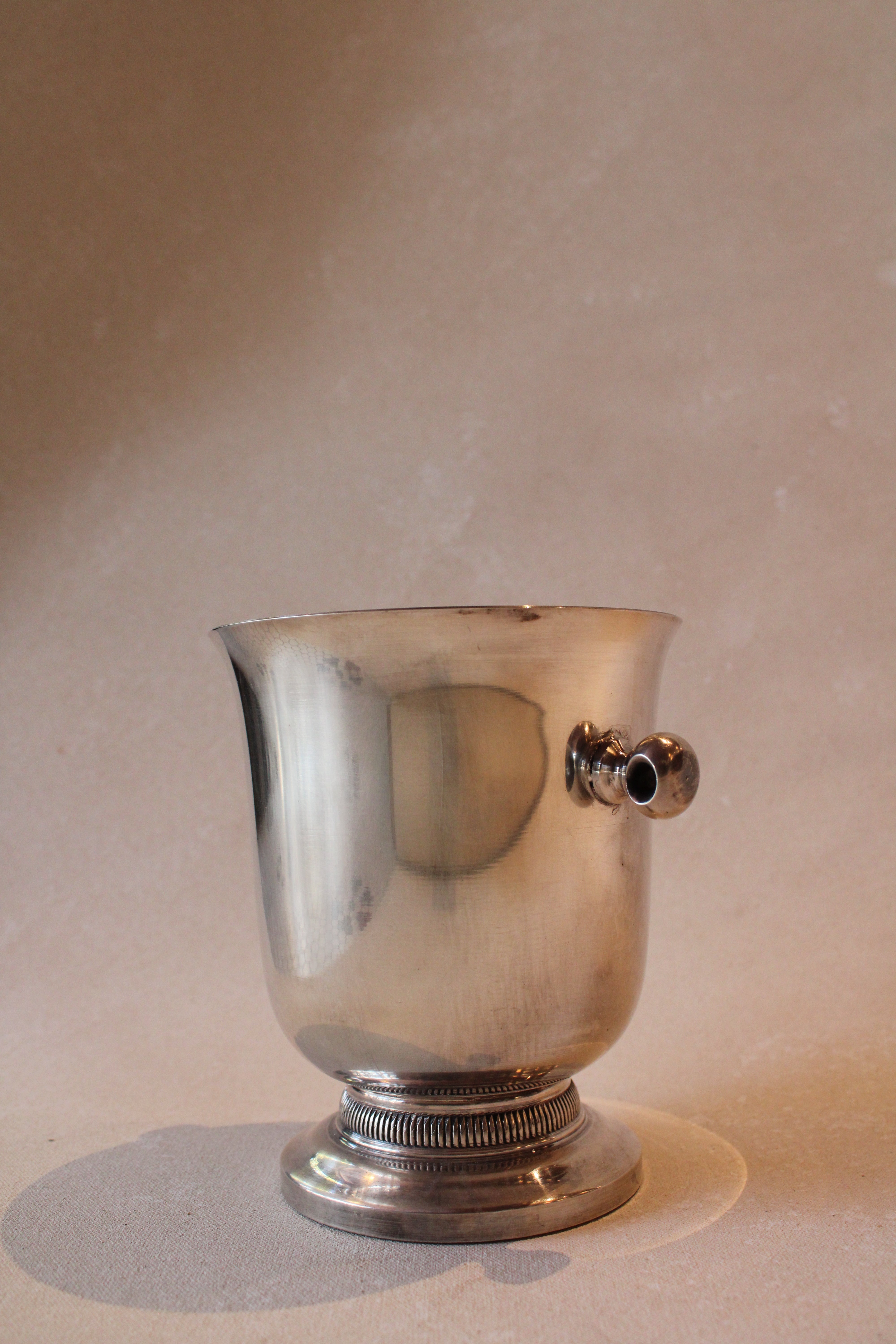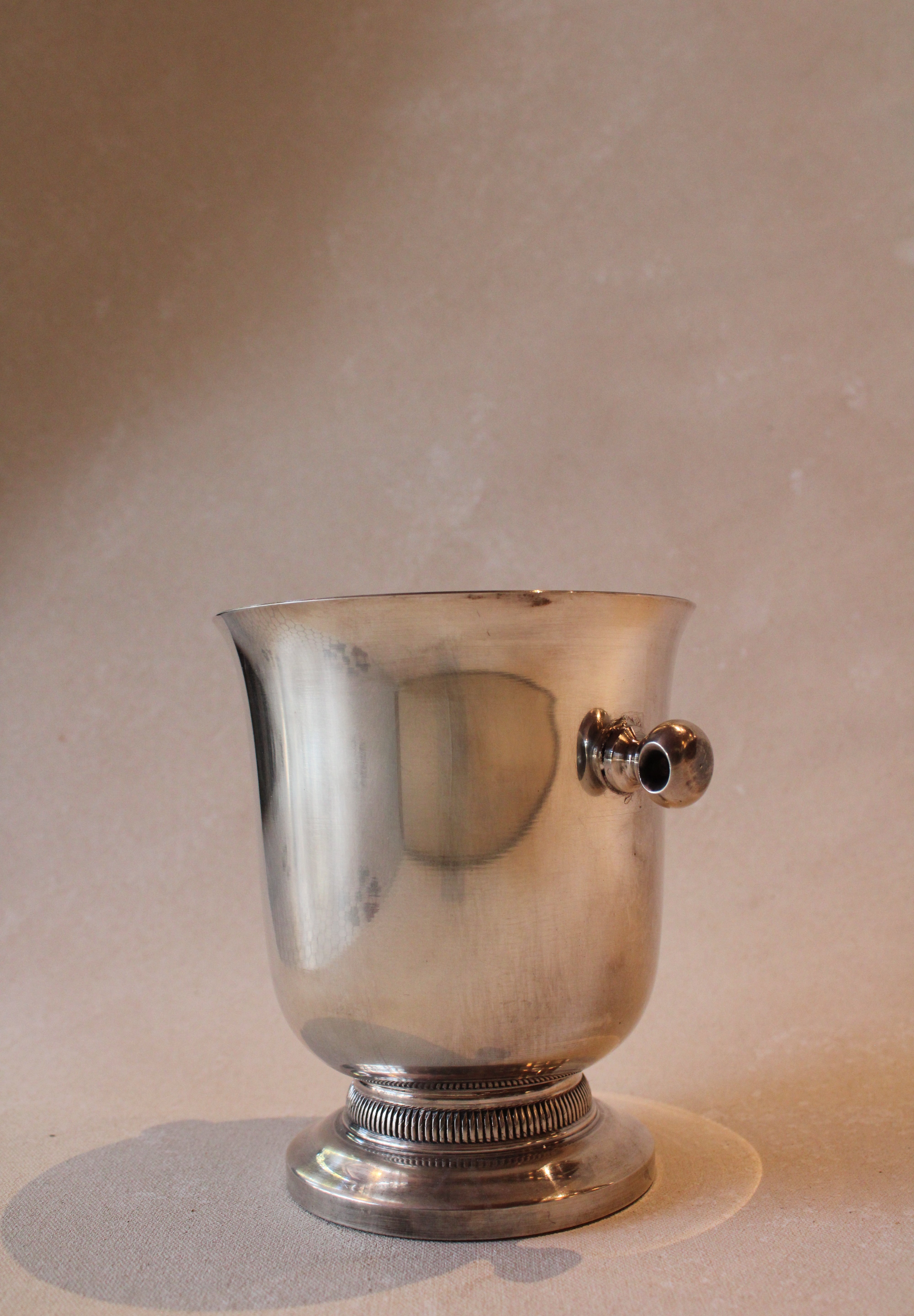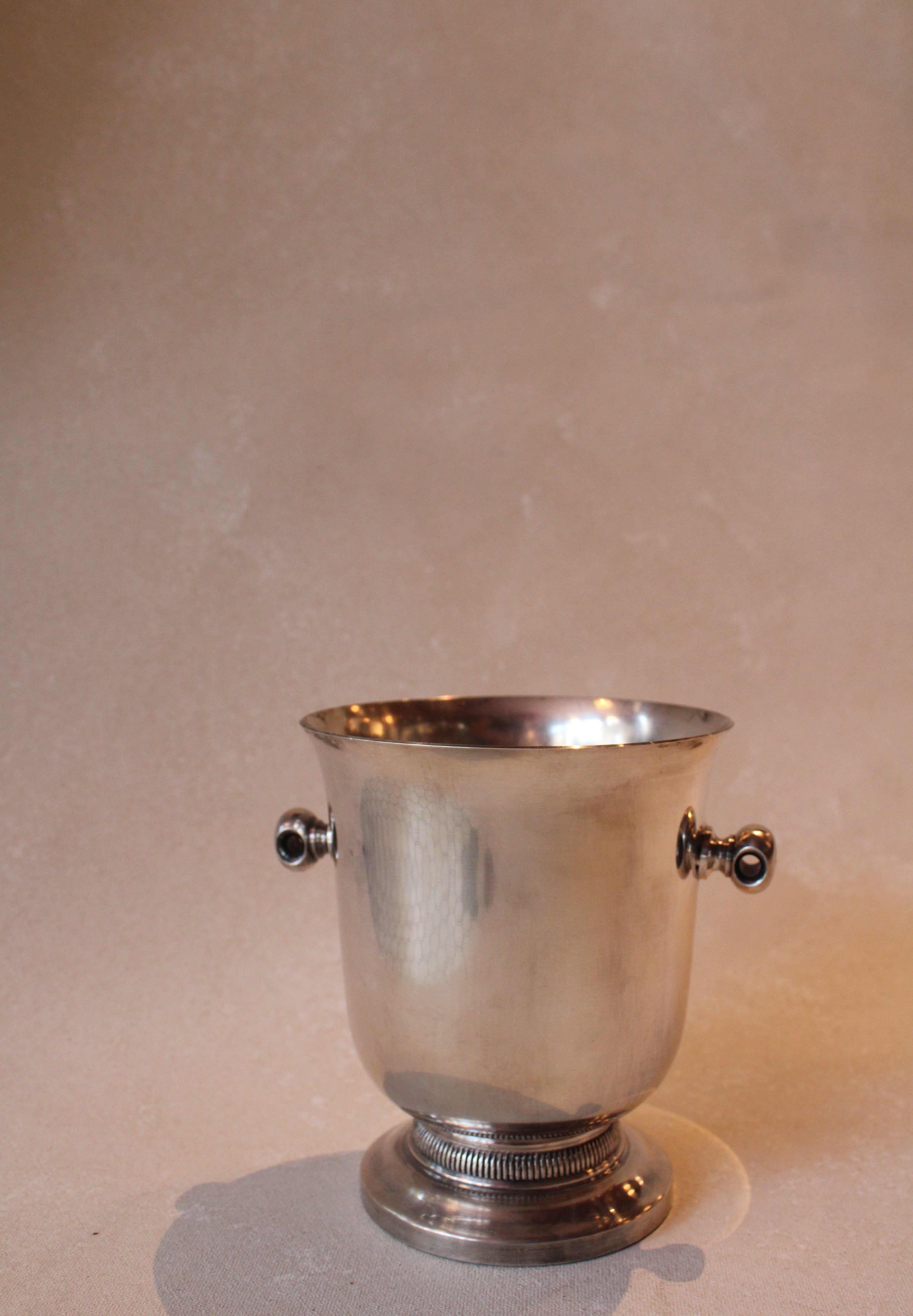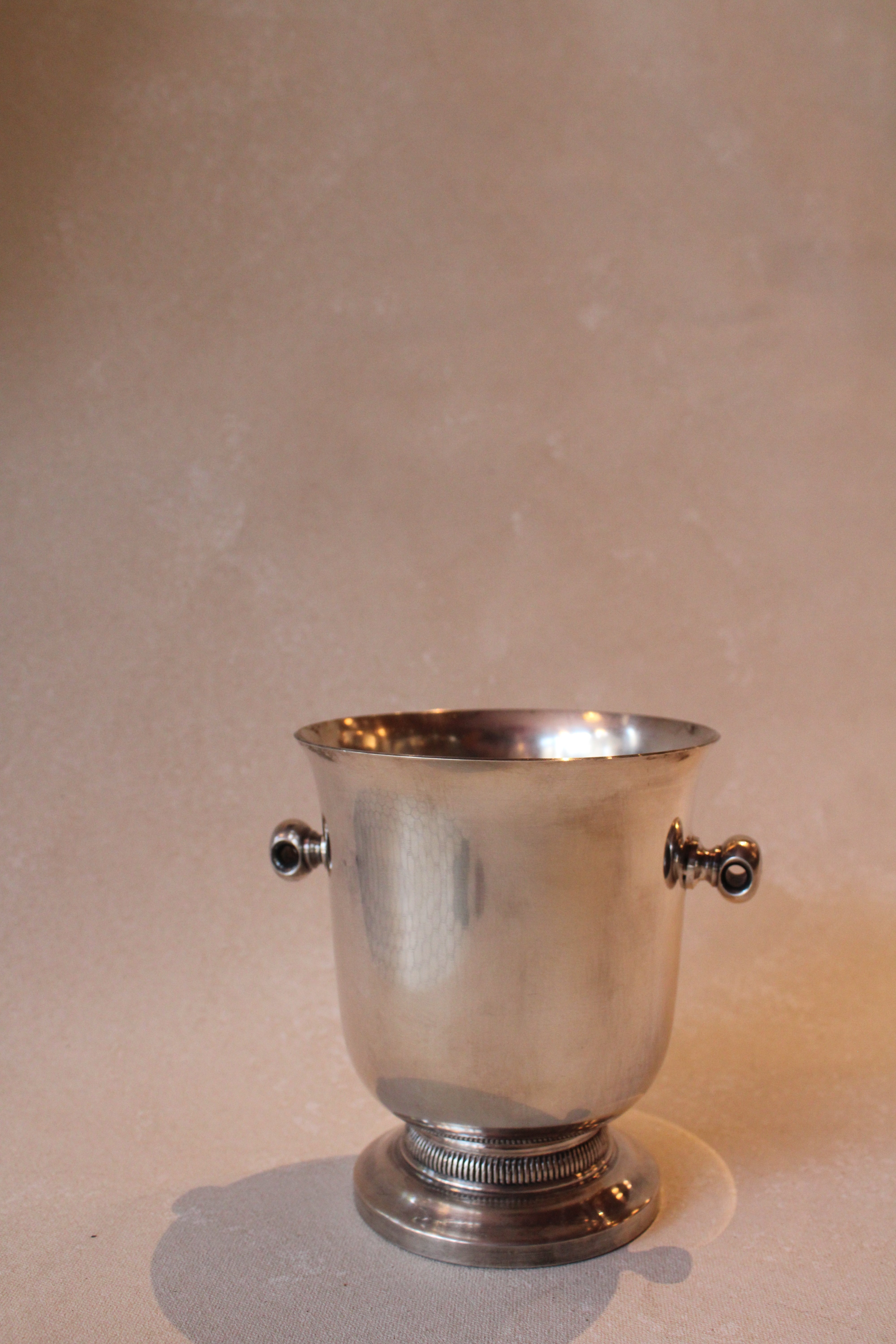 Experience refined luxury with this Miniature Silver Champagne Bucket, a vintage piece that radiates elegance in every detail. Crafted from gleaming silver, its compact size makes it a charming accent for intimate gatherings or stylish displays. The bucket’s classic design evokes timeless sophistication, ideal for chilling a single bottle of champagne or sparkling wine with grace. Perfect for collectors and connoisseurs alike, it adds a touch of vintage allure to any setting, blending functionality with exquisite craftsmanship to elevate your entertaining experience.