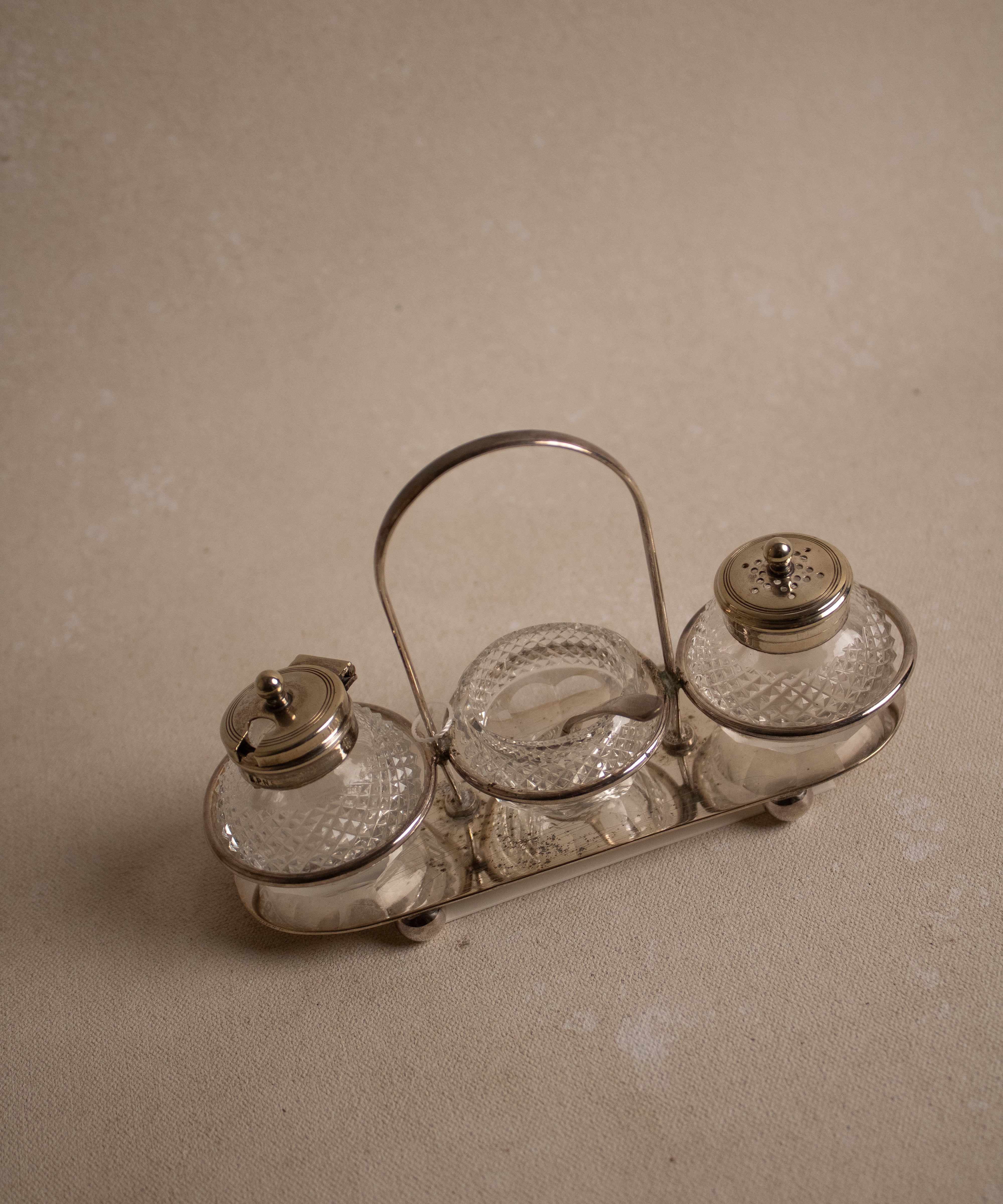 Vintage Silver Plate & Cut Crystal Condiment Set