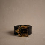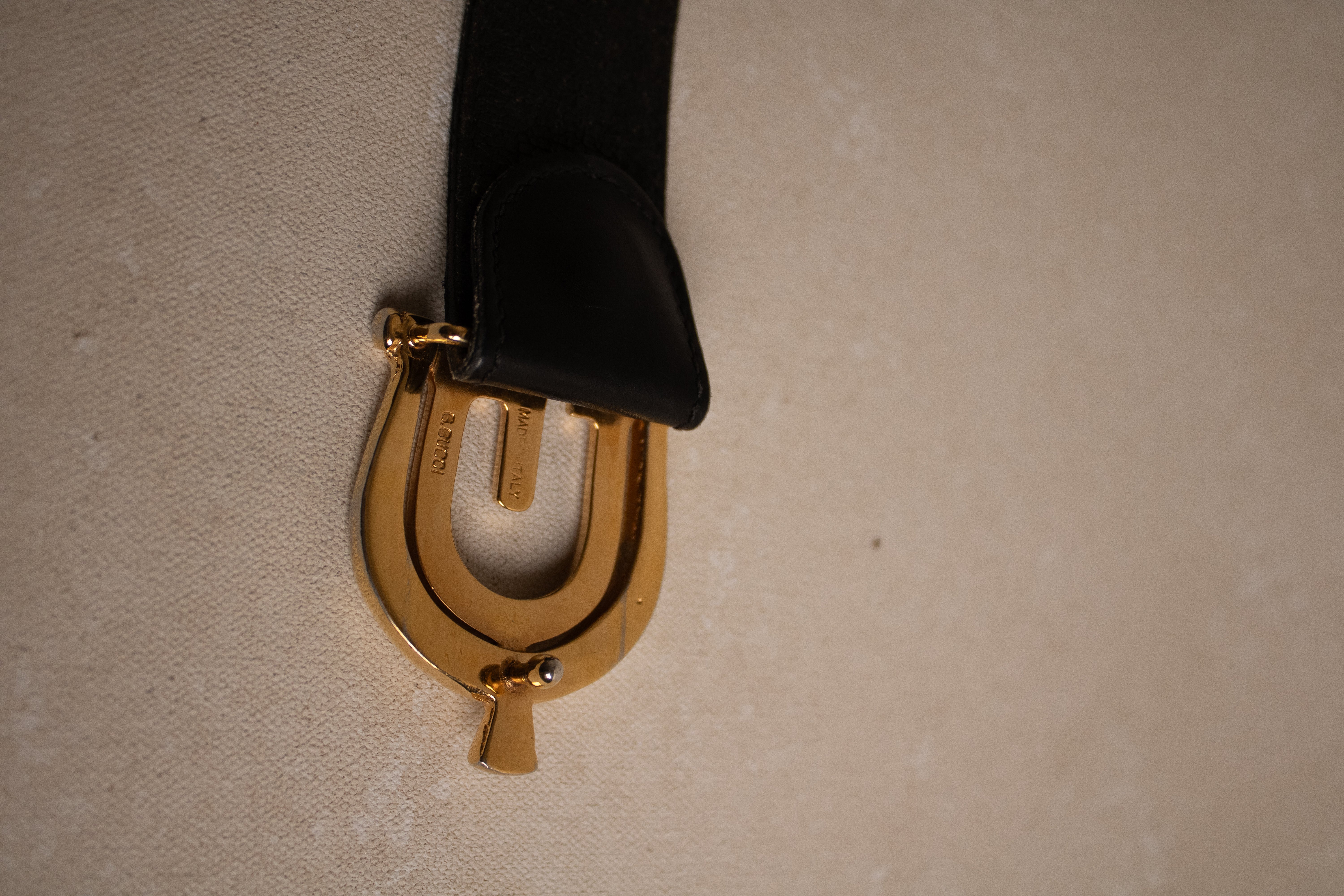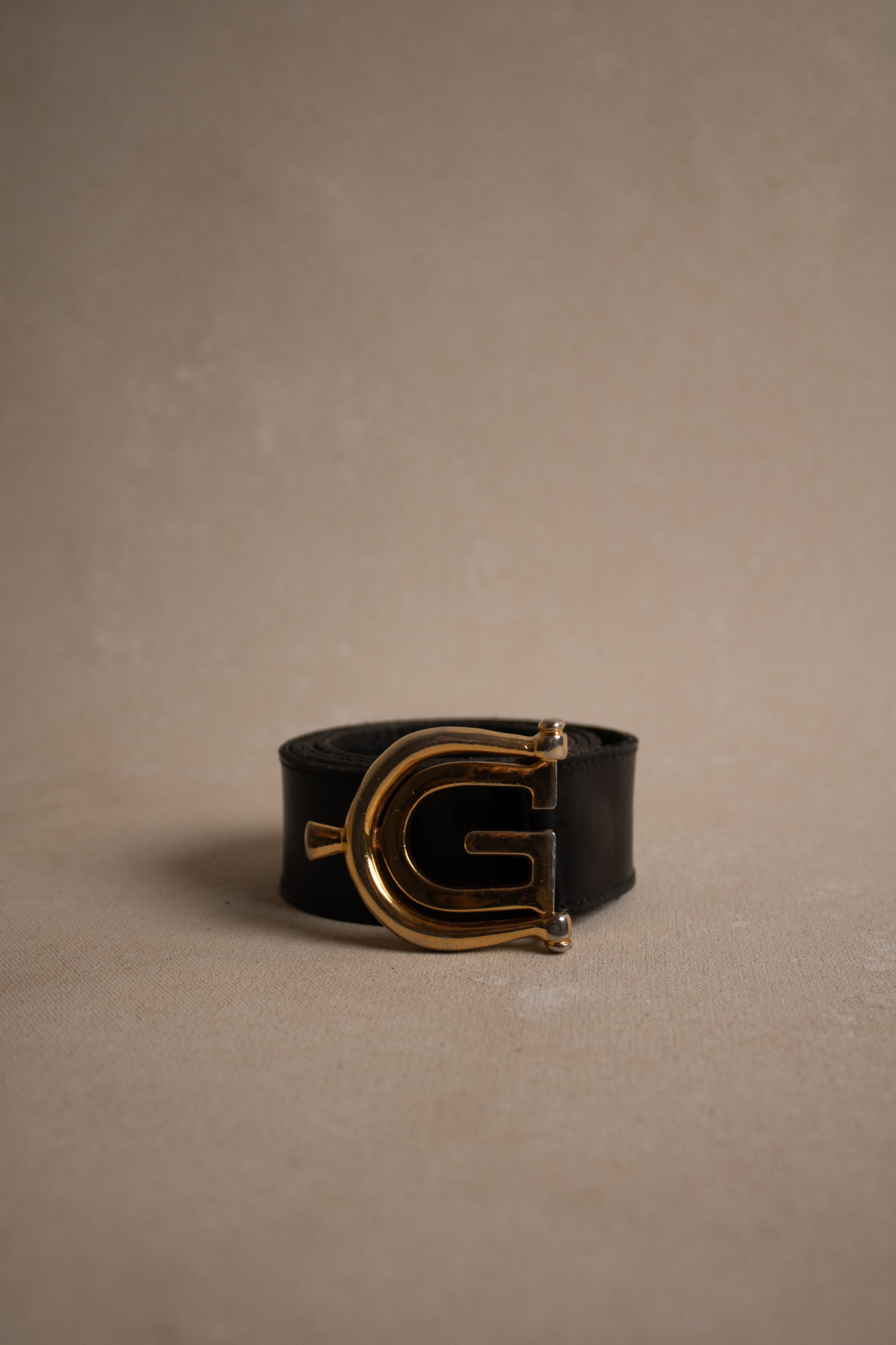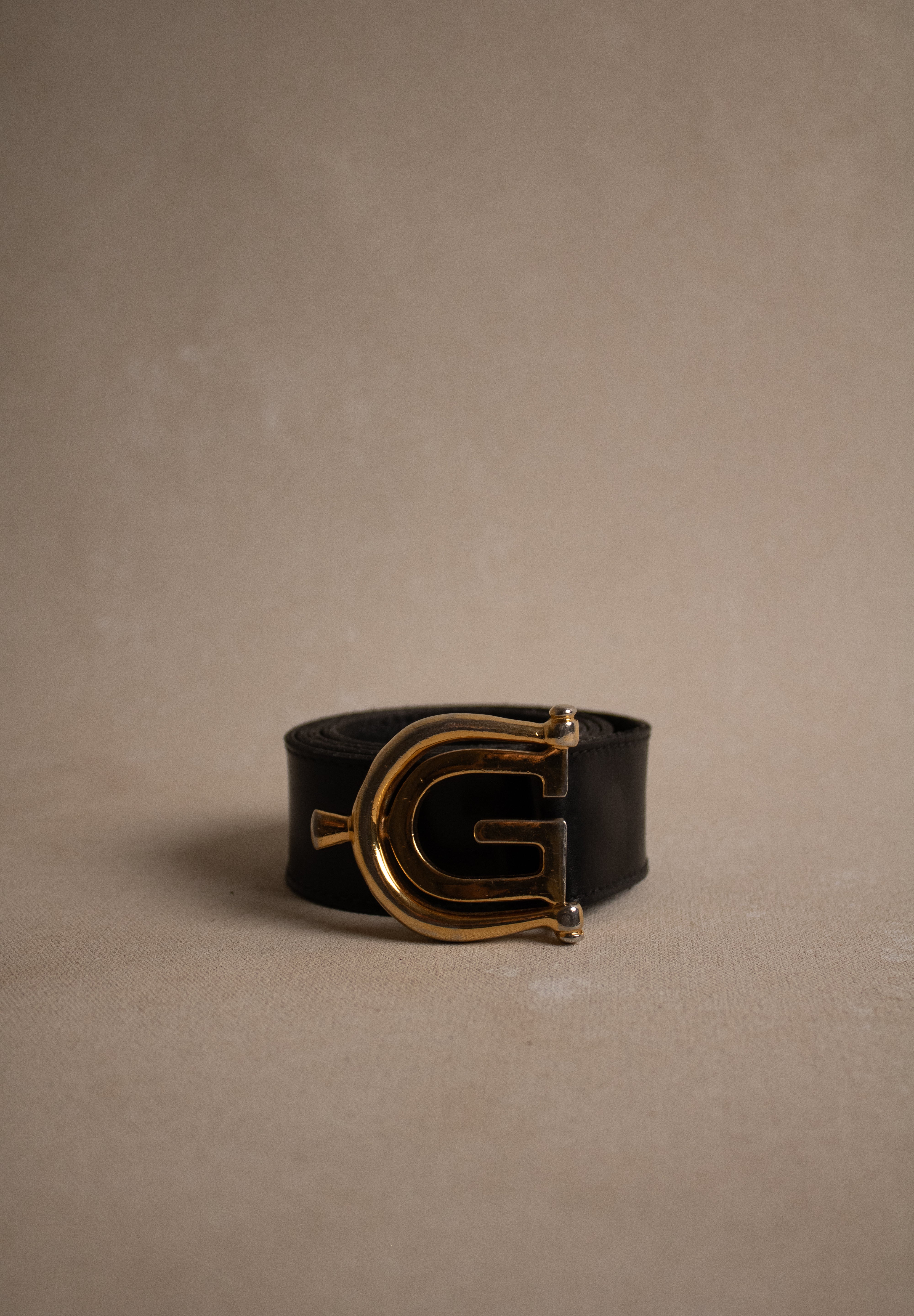 Elevate your wardrobe with this iconic Gucci Belt, 1970s in supple black leather, distinguished by the signature gold G buckle that commands attention. Crafted with meticulous attention to detail, this timeless accessory seamlessly transitions from boardroom to evening occasions, offering versatile sophistication for the discerning individual. The refined construction and prestigious branding make it an investment piece that complements both classic and contemporary ensembles. Whether cinching tailored trousers or defining the silhouette of a dress, this belt delivers understated luxury and enduring style that transcends seasonal trends.