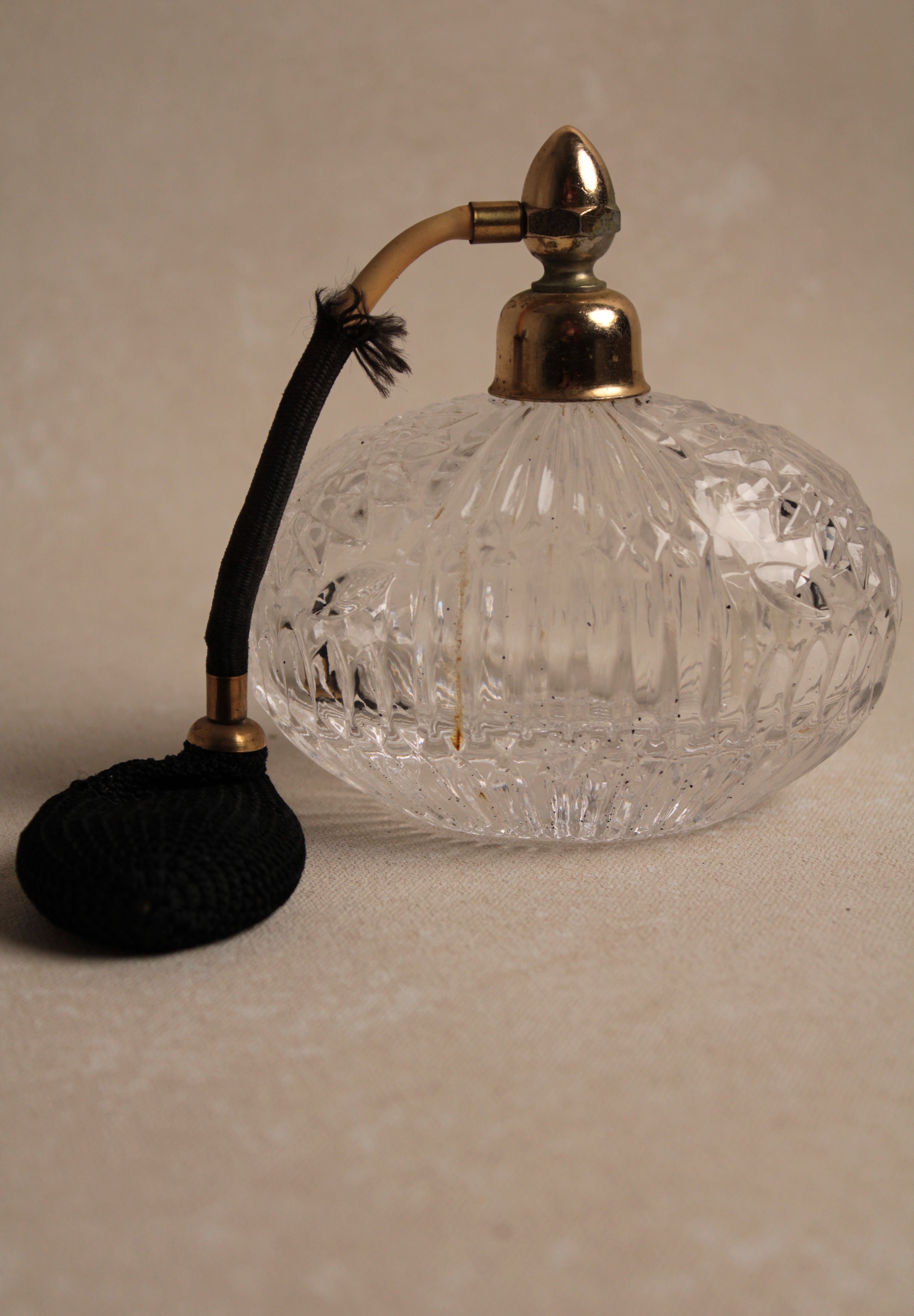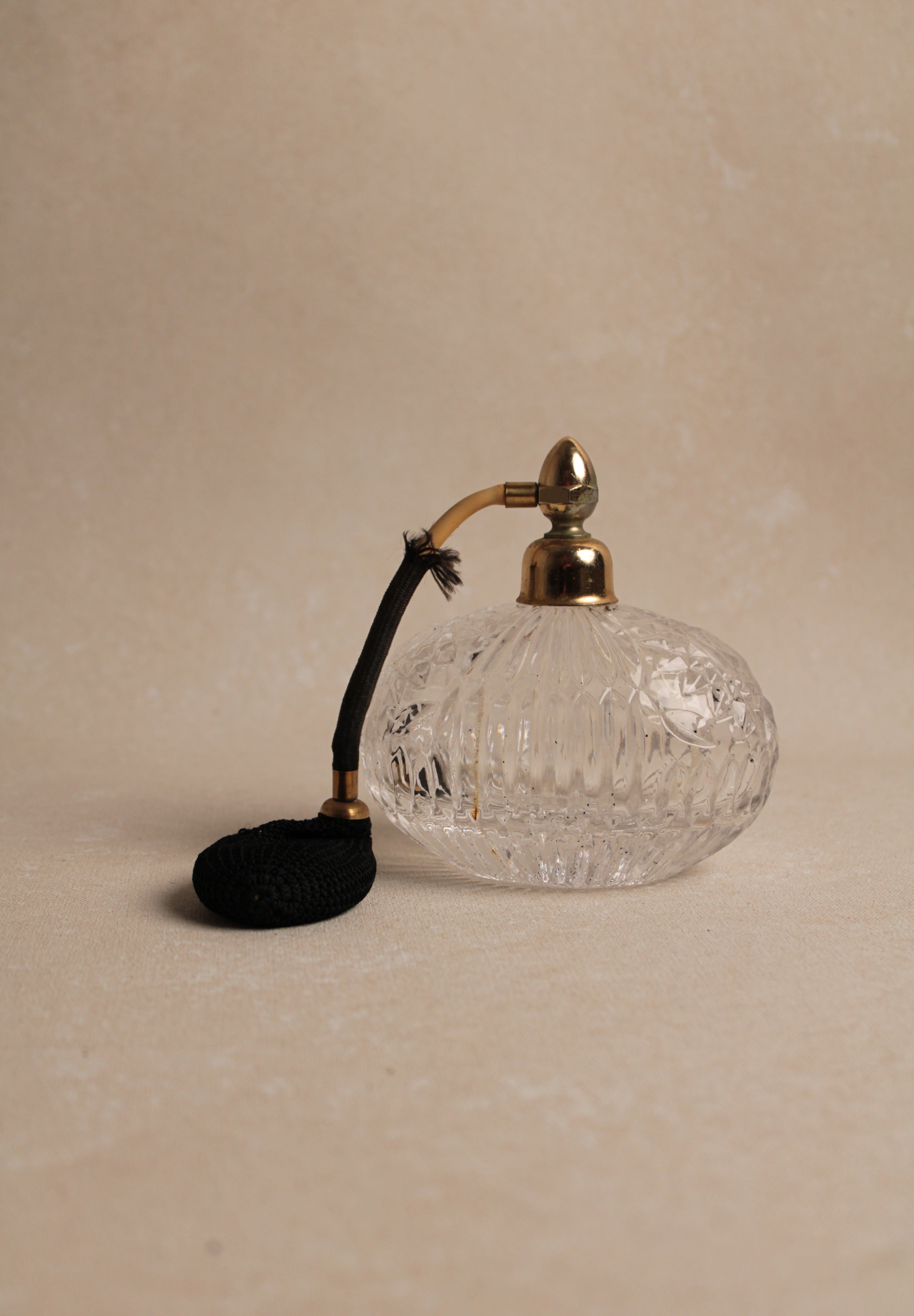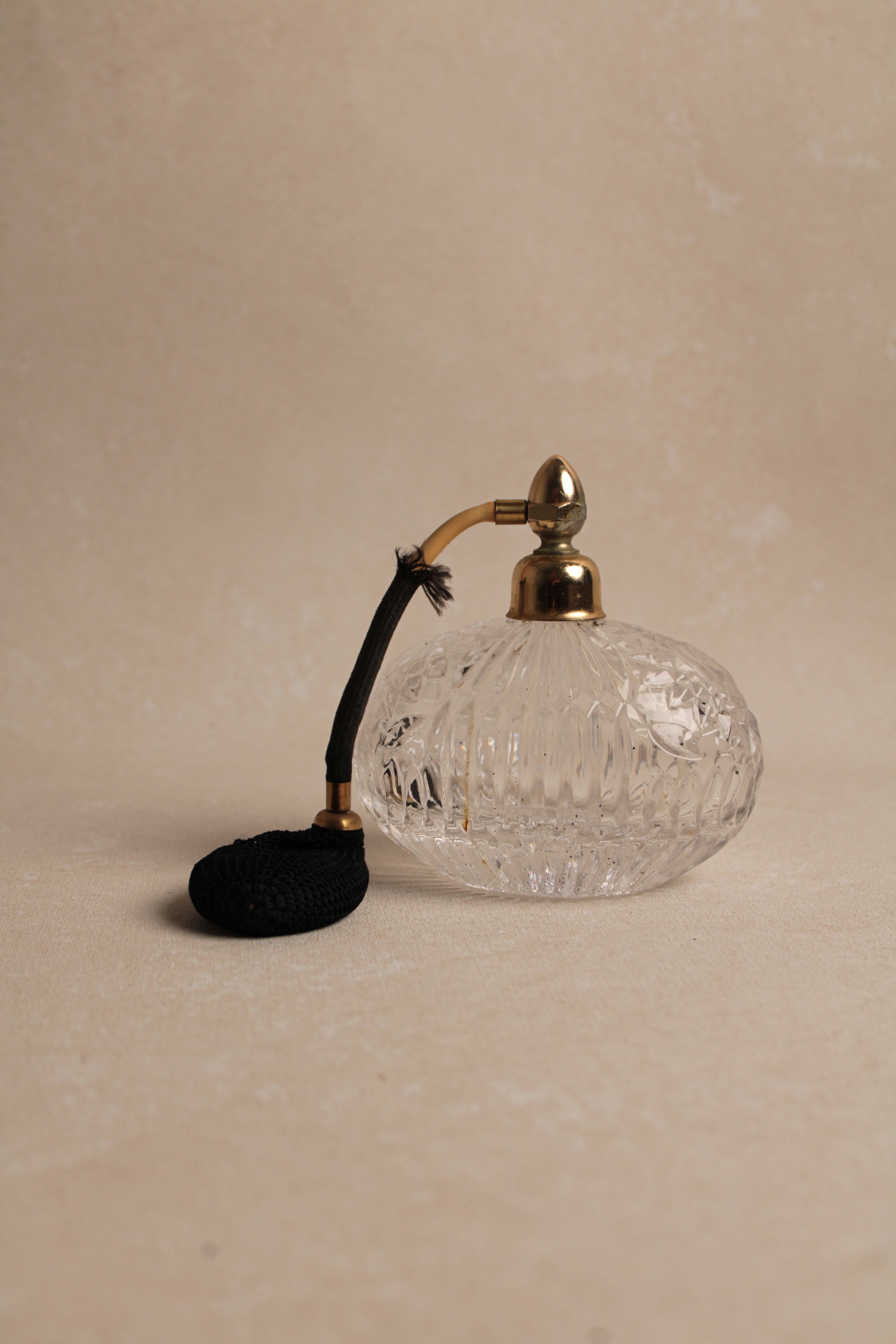 The Vintage Cut Glass Perfume Atomizer exemplifies the marriage of functional design and decorative artistry that characterized early twentieth-century luxury accessories. This exquisite piece features intricately cut glass that refracts light with prismatic brilliance, transforming it into a miniature work of art worthy of display. The atomizer mechanism, a hallmark of vintage perfume bottles, combines mechanical ingenuity with aesthetic refinement, allowing for precise fragrance application while serving as an elegant vanity accent. Crafted during an era when personal grooming accessories were celebrated as objects of beauty, this atomizer reflects meticulous craftsmanship and attention to detail that modern production rarely achieves. Whether displayed as a collectible, utilized for vintage fragrances, or appreciated as functional sculpture, this piece captures the sophistication of a bygone era. Perfect for collectors of decorative arts, vintage enthusiasts, and those who recognize that true luxury lies in the intersection of beauty and purpose.