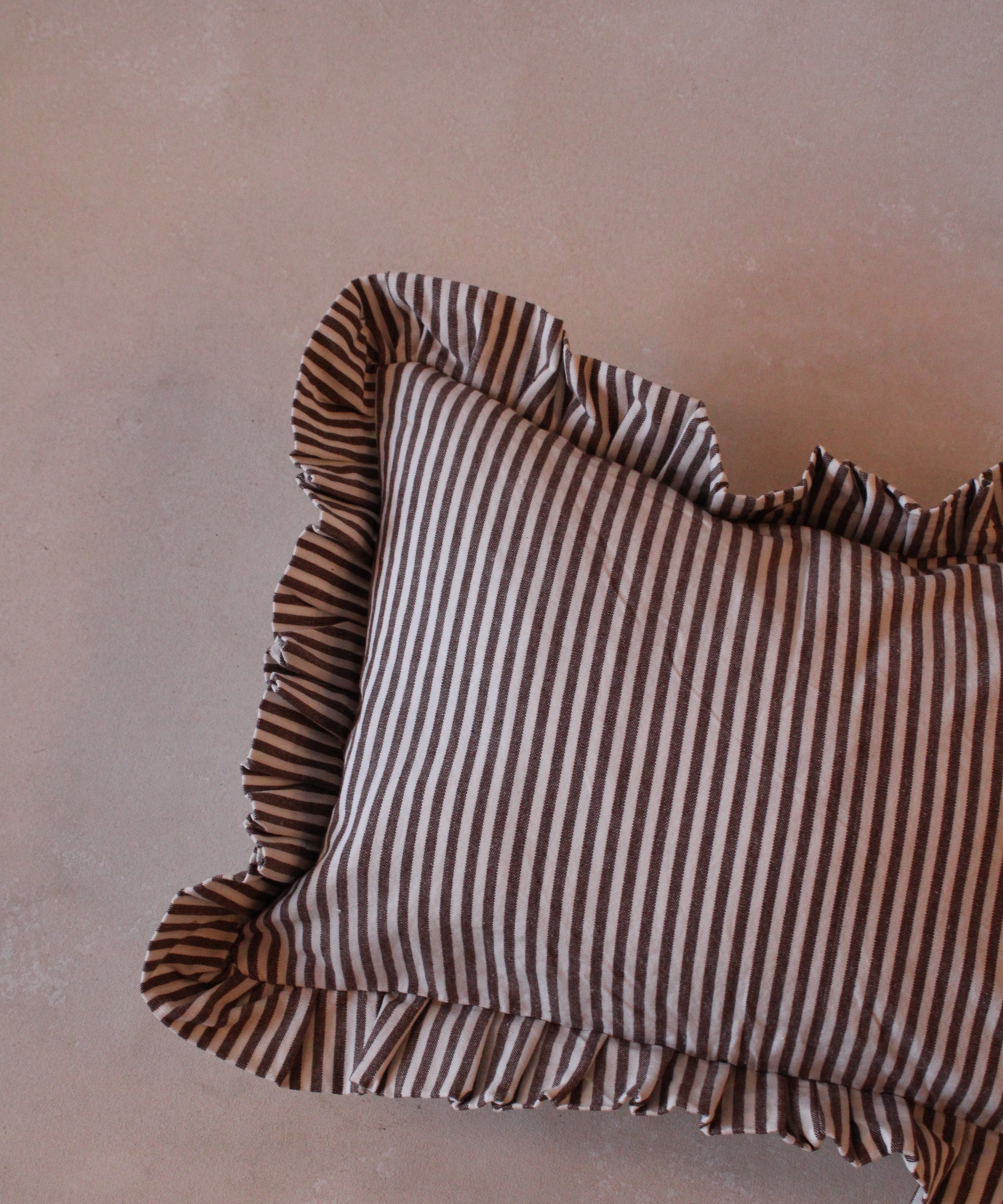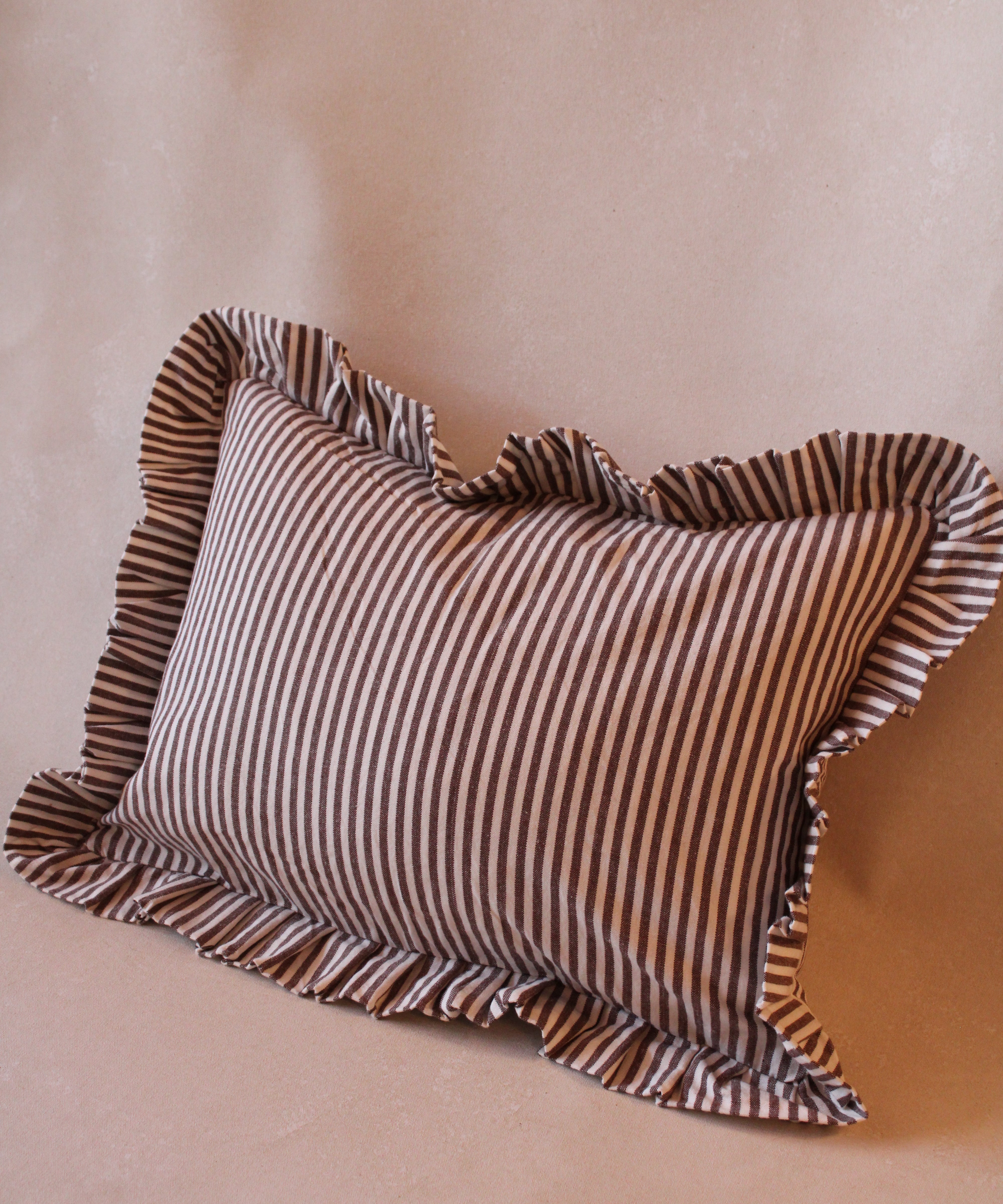 Ruffle Lumbar Pillow Cover Brown White Stripes