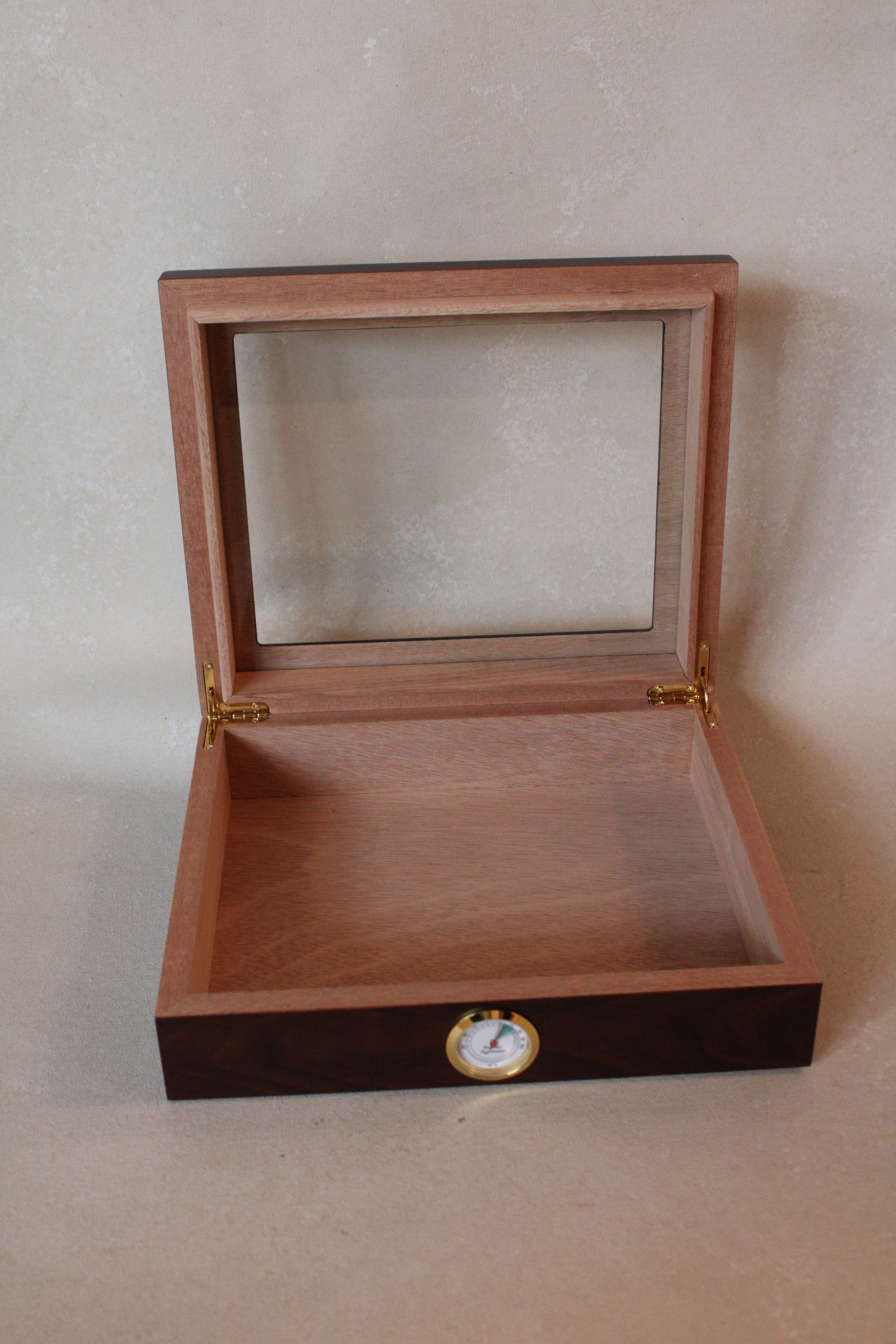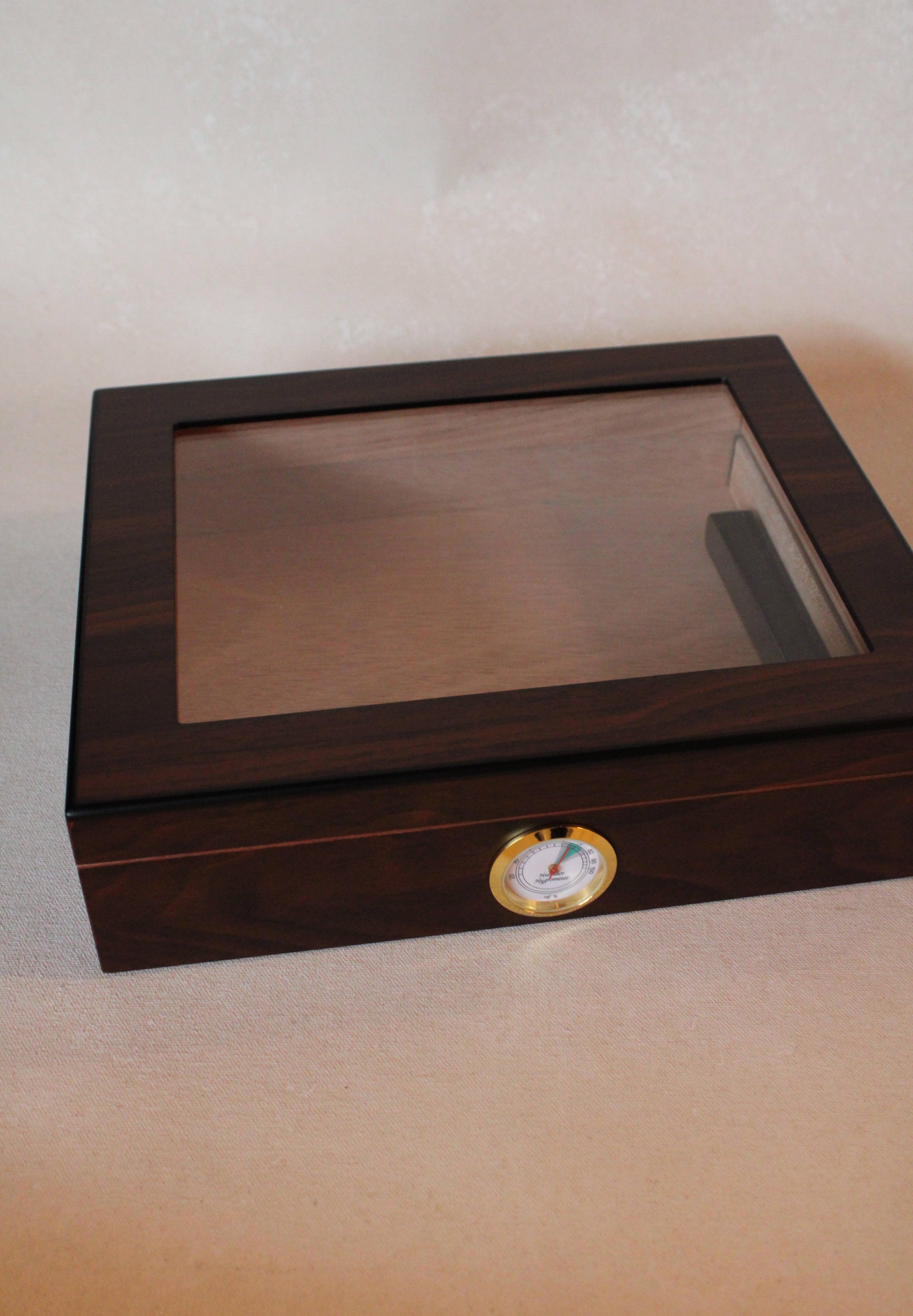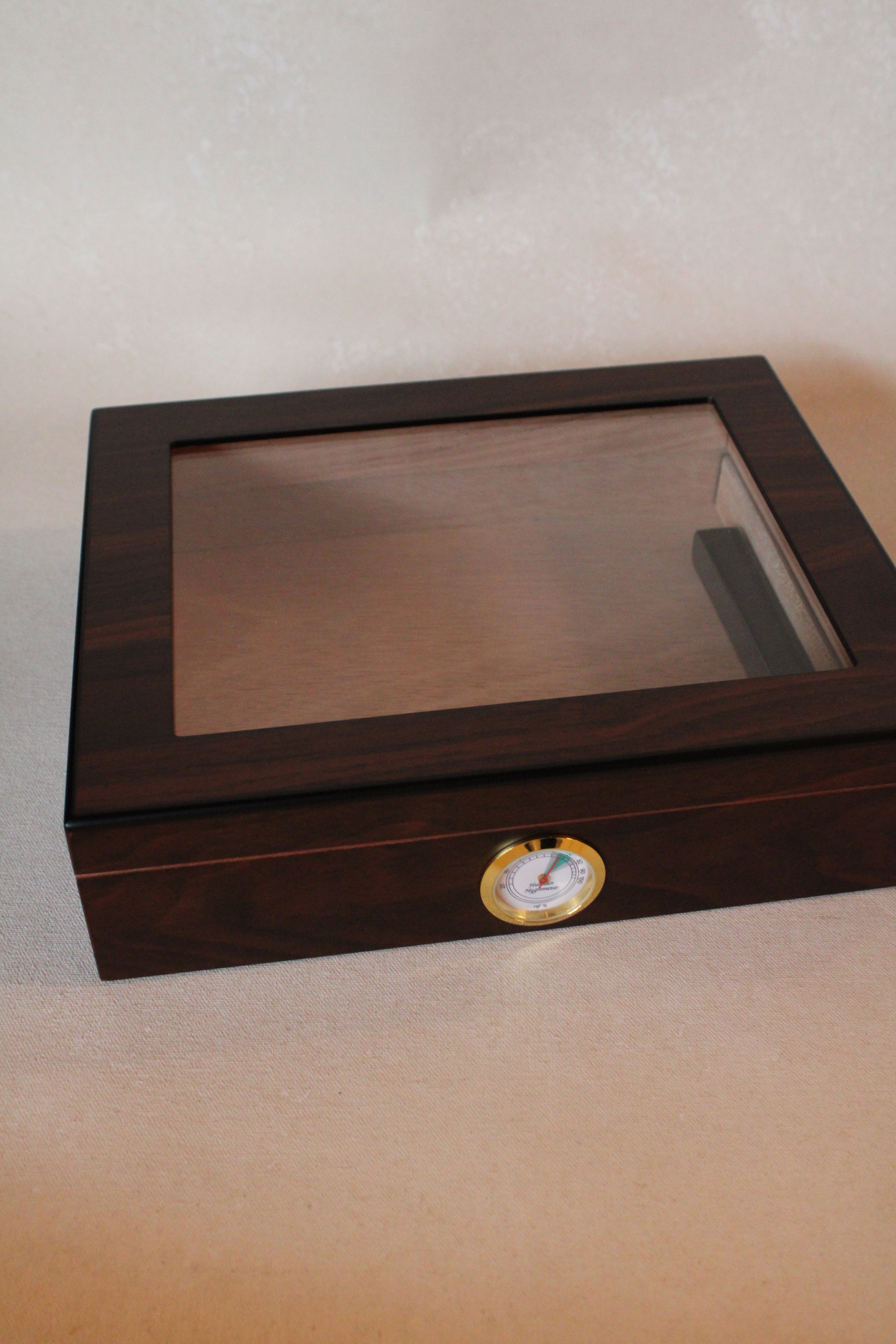 Presenting the Finley Walnut 12 Cigar Humidor, a refined storage solution tailored for the discerning cigar aficionado. Crafted with a luxurious walnut finish, this humidor elegantly complements any setting while providing secure accommodation for up to 12 cigars. Equipped with a precise hygrometer, it enables you to maintain ideal humidity levels, ensuring your cigars age gracefully and retain their full flavor. Beyond its aesthetic appeal, this humidor represents a commitment to quality and reliability, making it an essential addition for those who appreciate the art of cigar preservation.