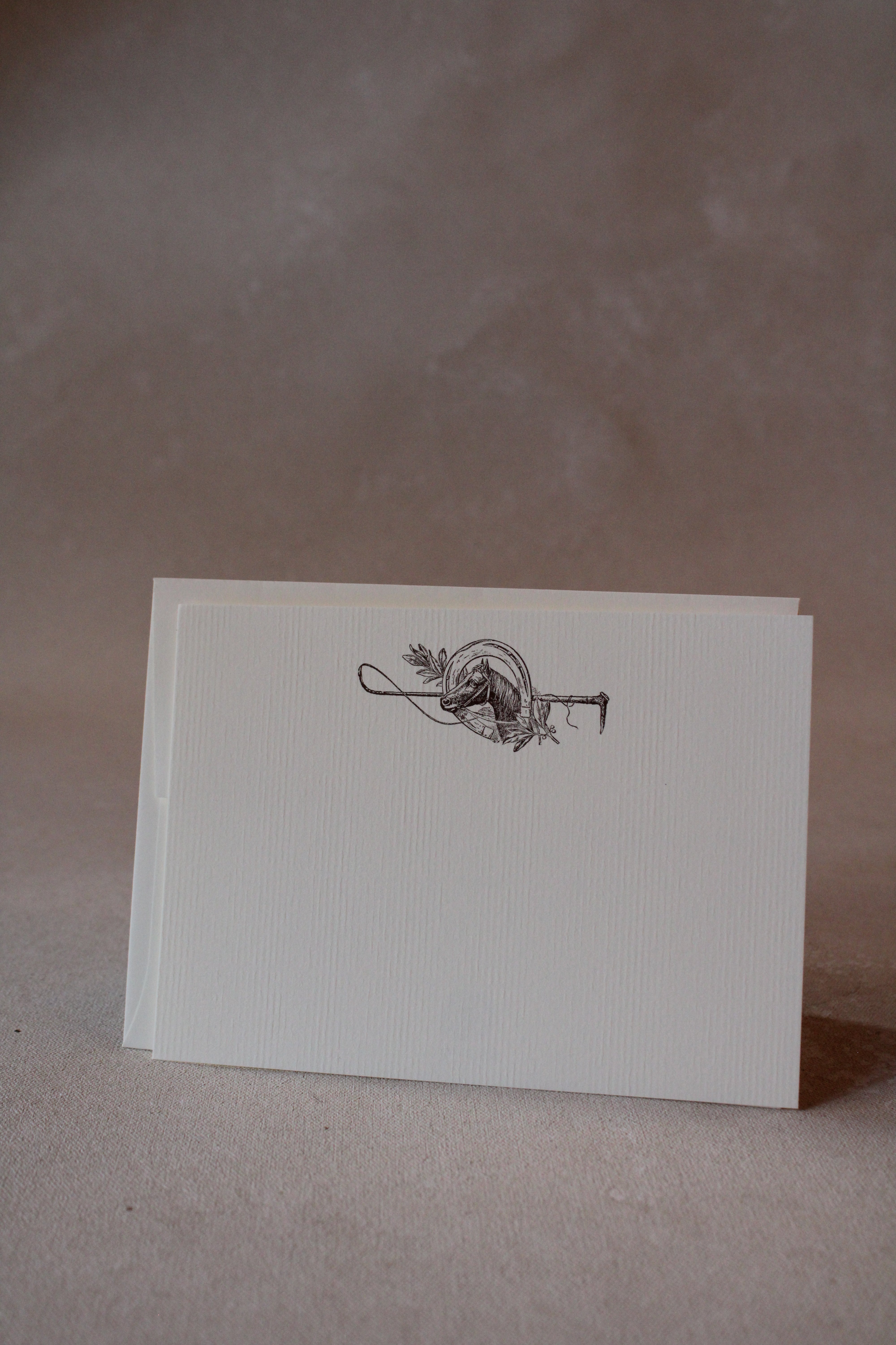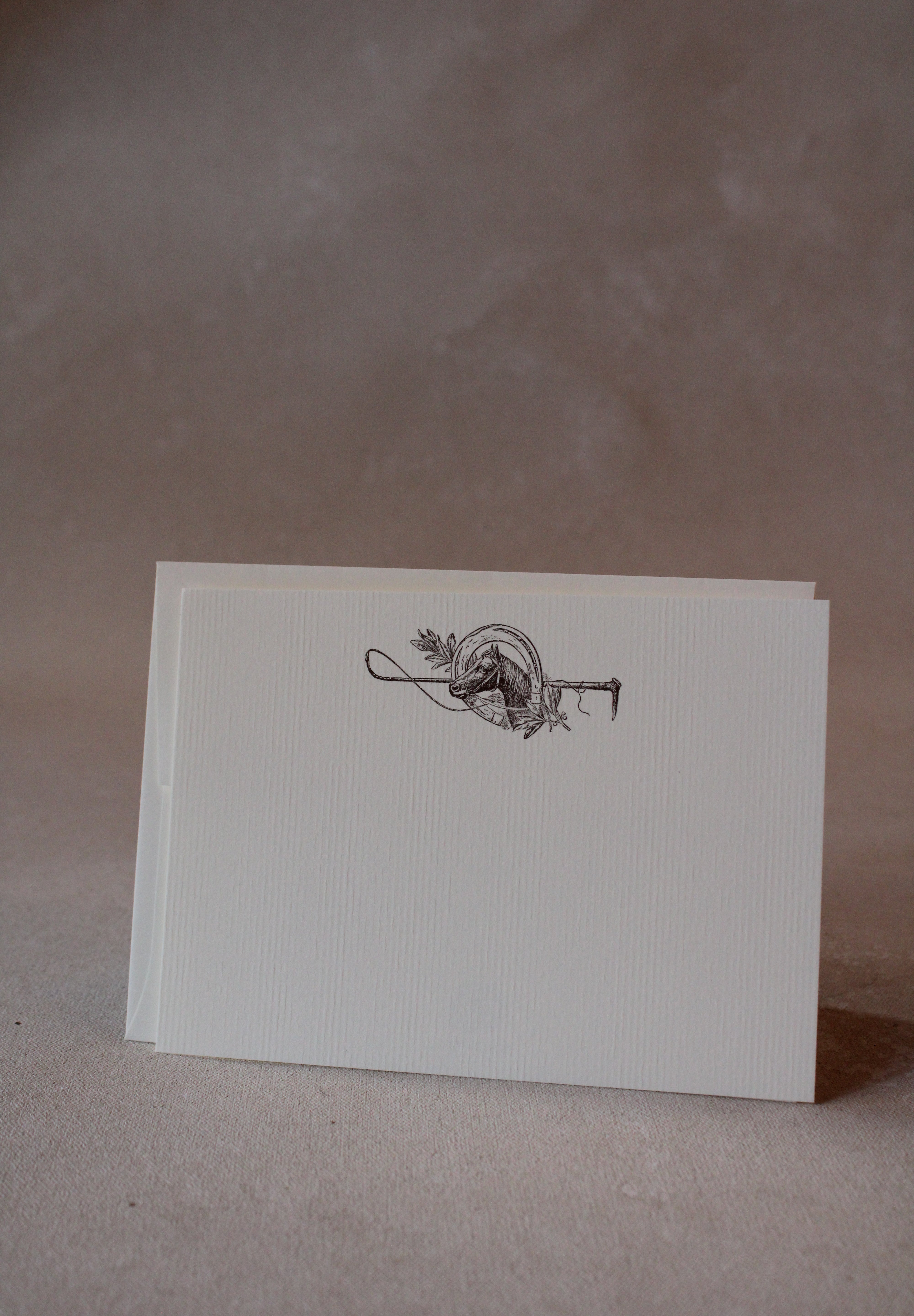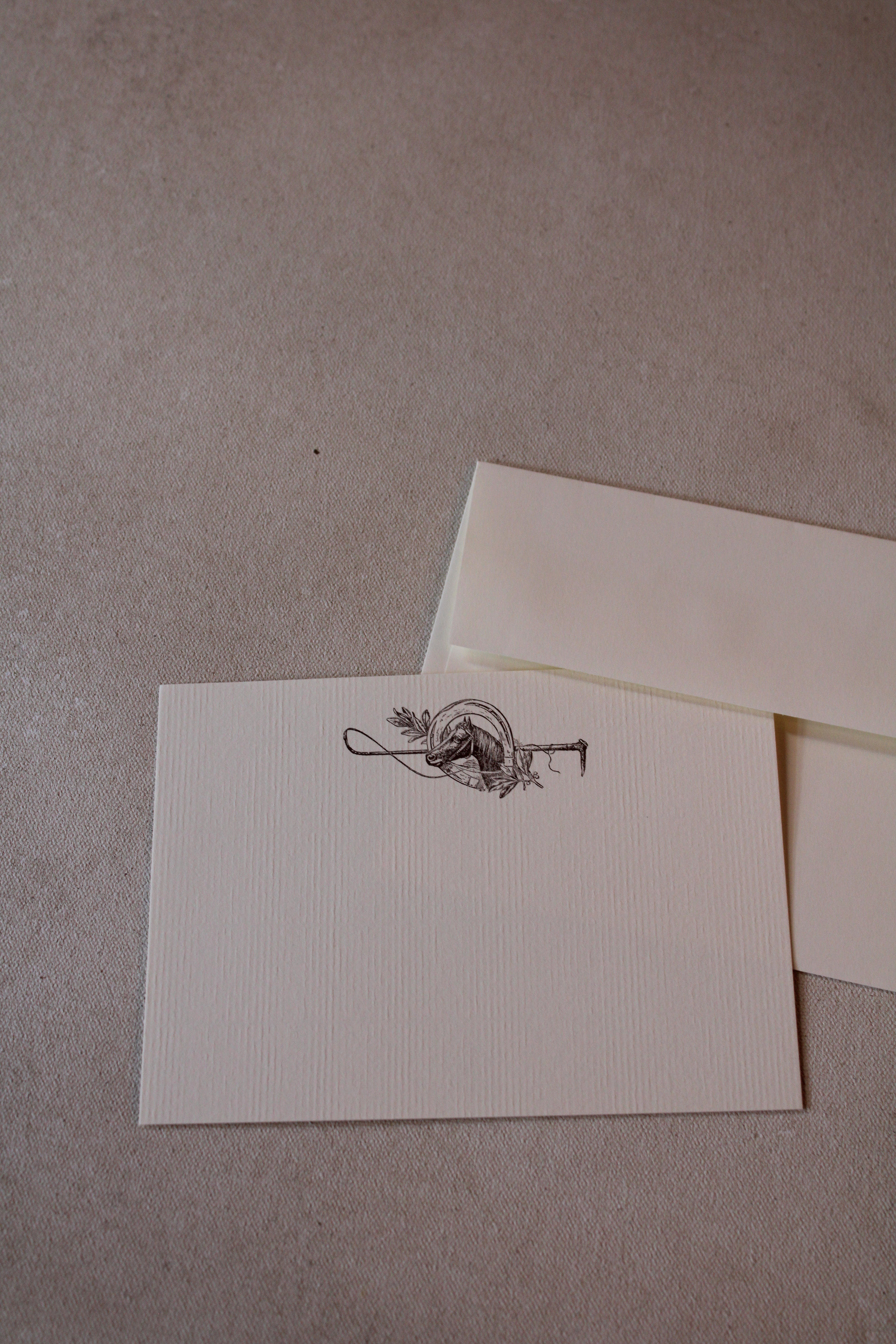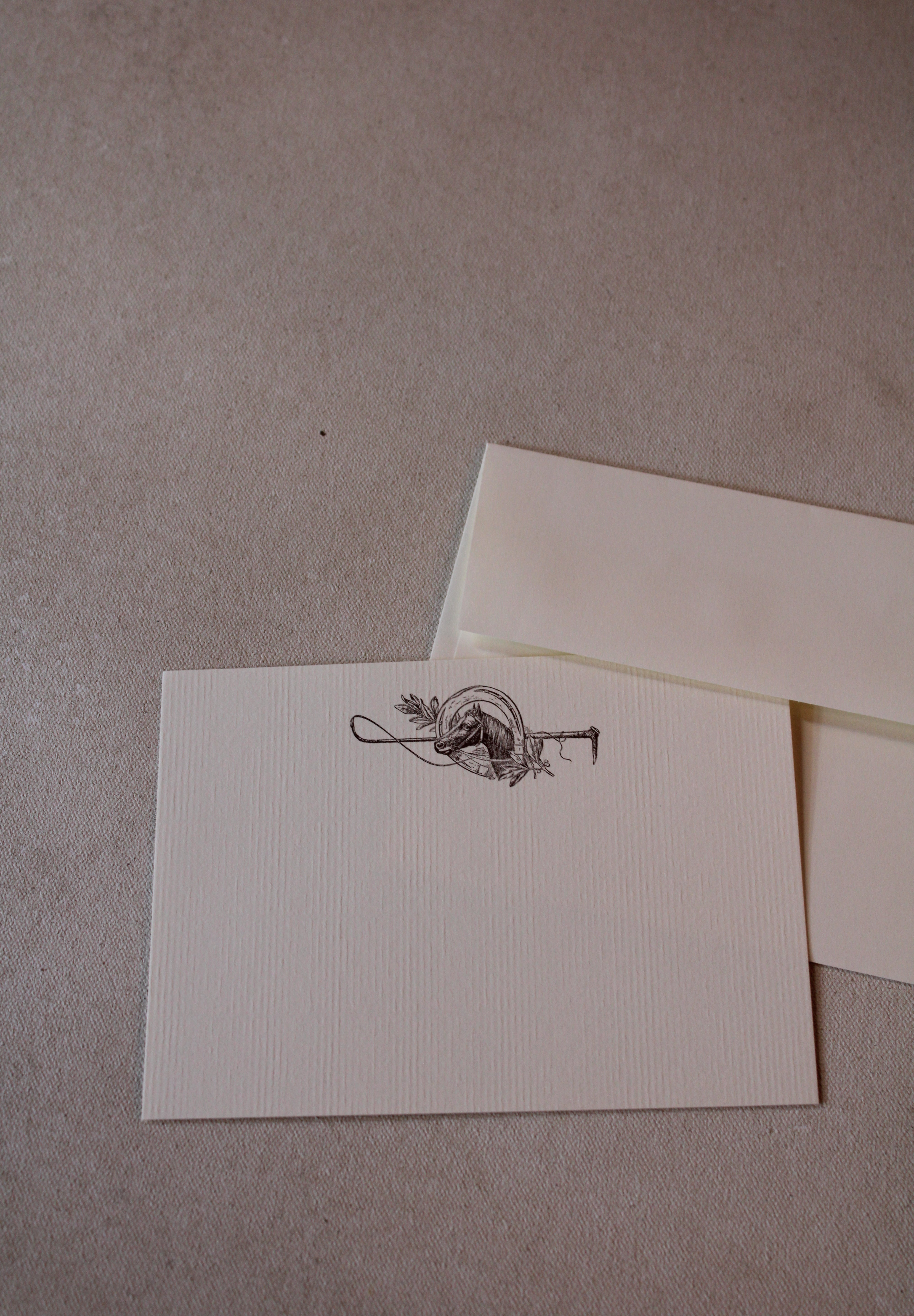 Share your messages with elegance using these Horse Shoe A6 Notes. The hand-drawn illustrations are flat printed with environmentally friendly soy-based ink on high-quality, USA-made Ecru textured Laid 80# Cover stock paper. Each design is carefully created and printed in New Orleans.