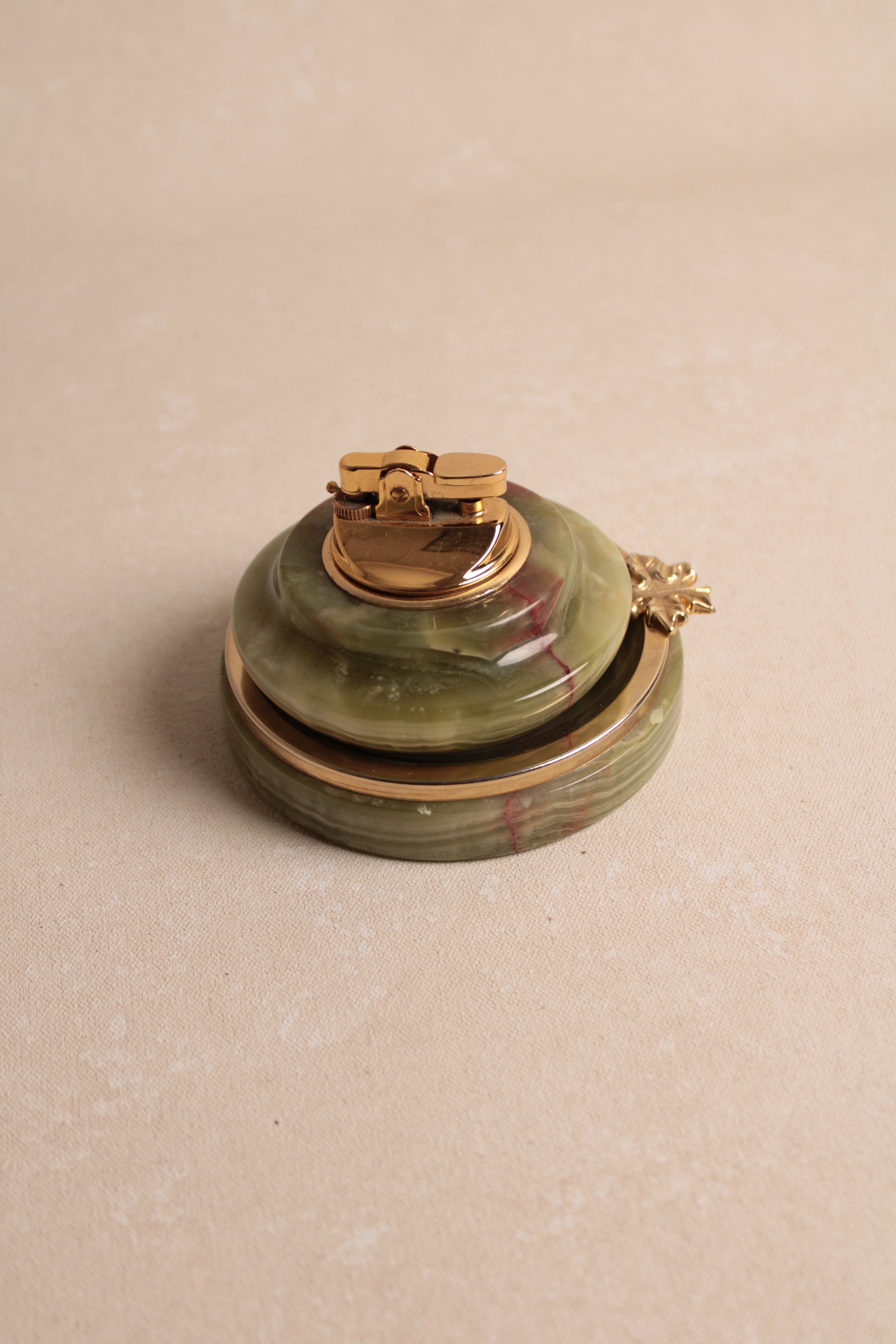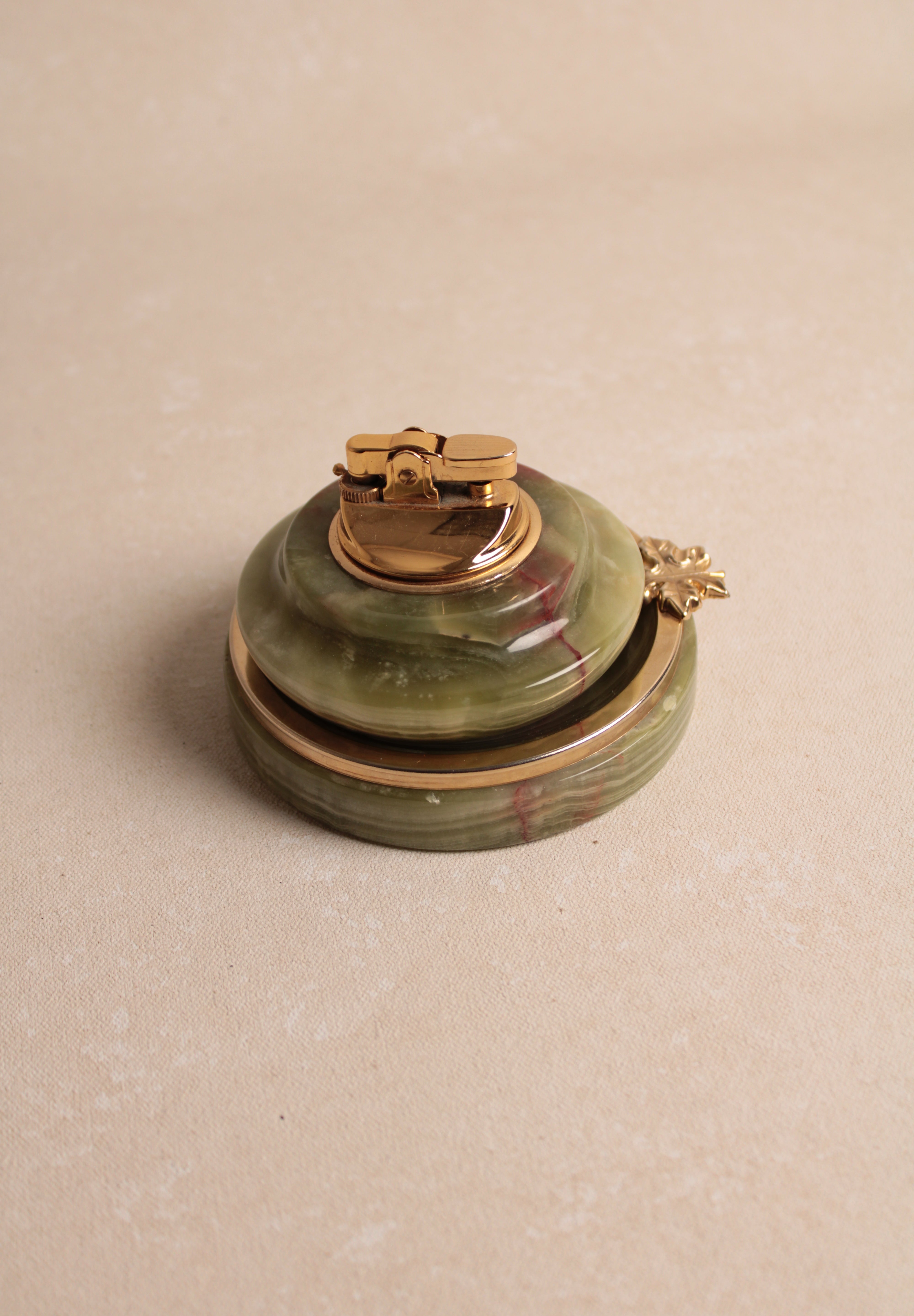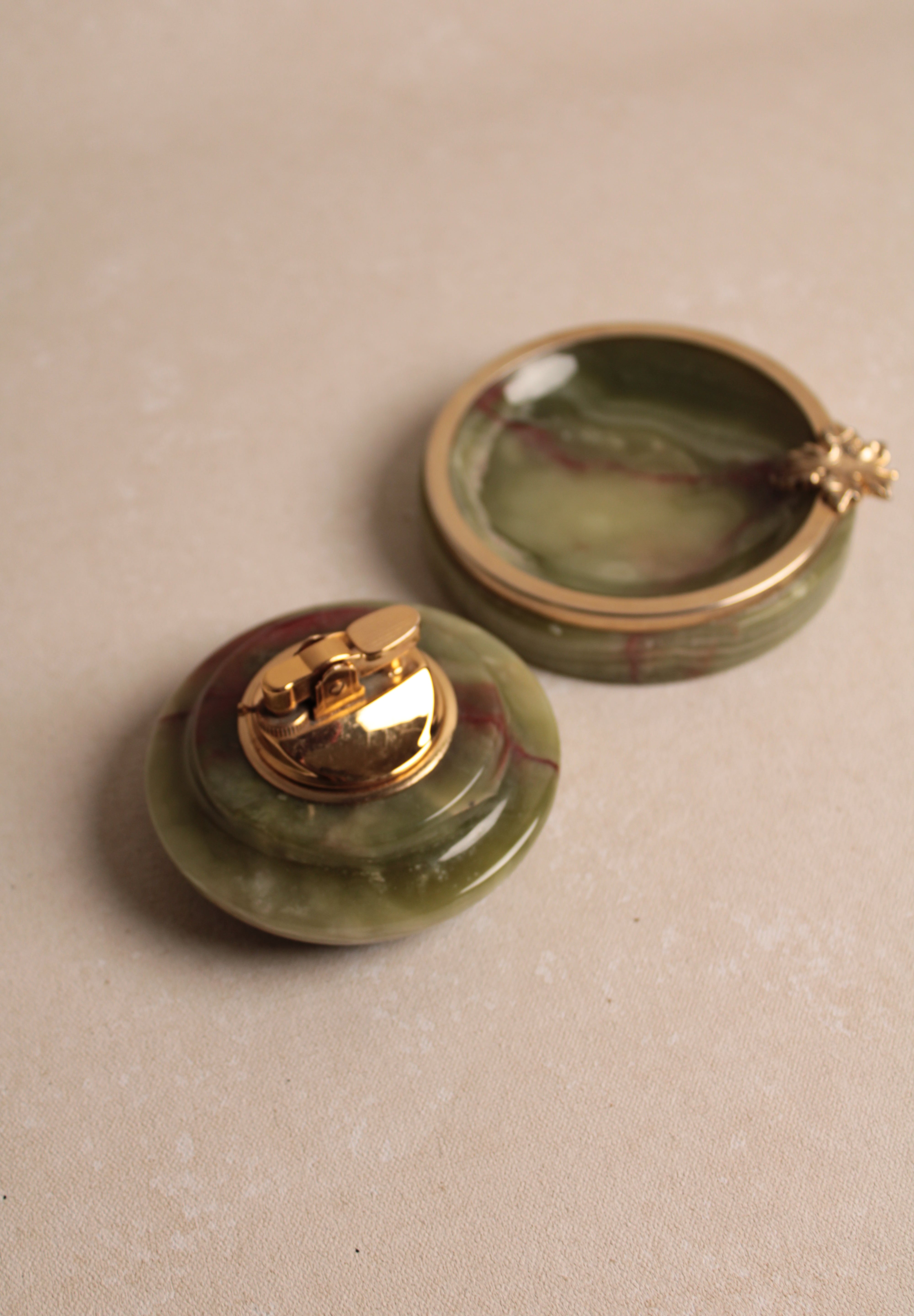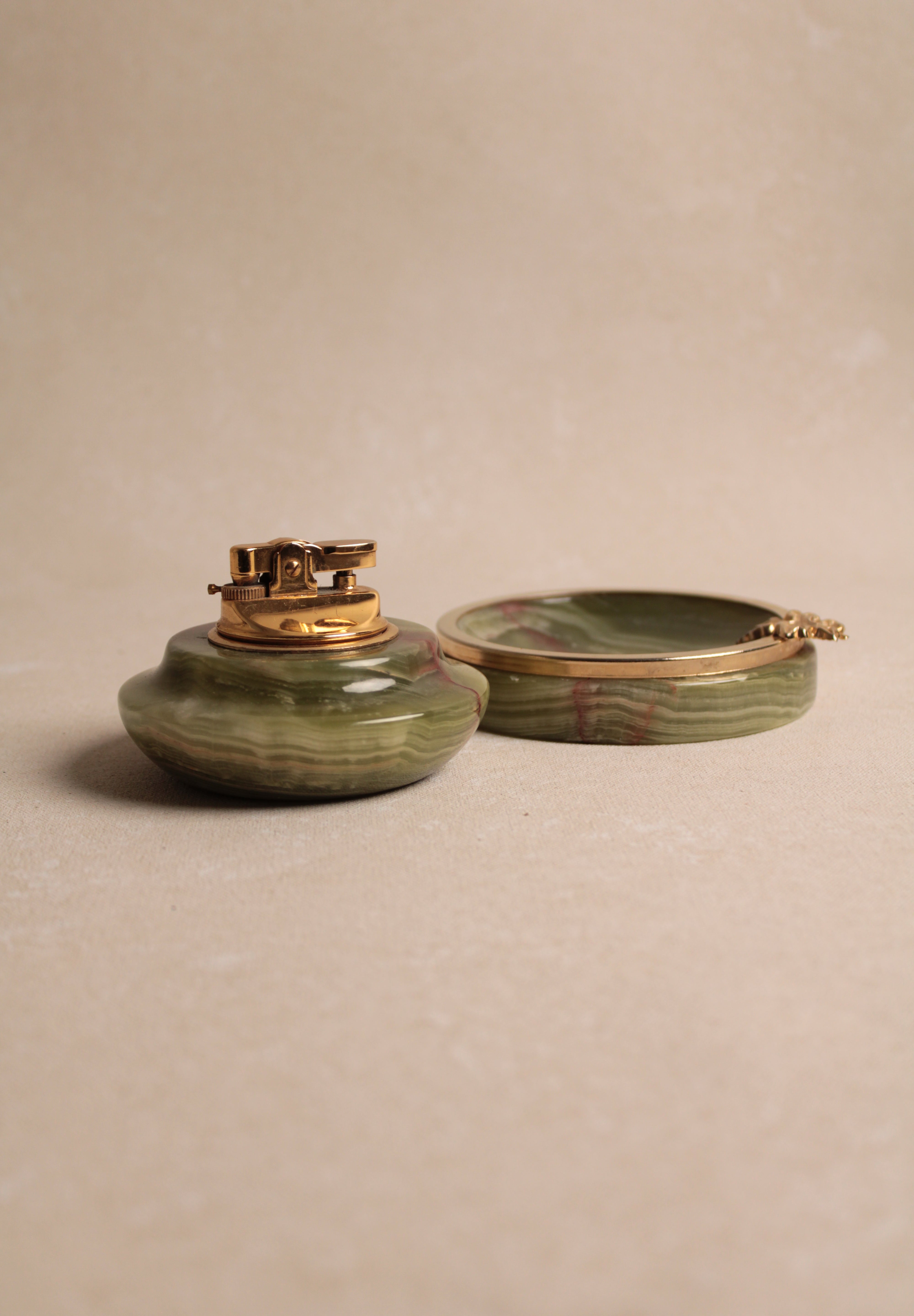 French Vintage Onyx Table Lighter & Matching Ashtray|1970