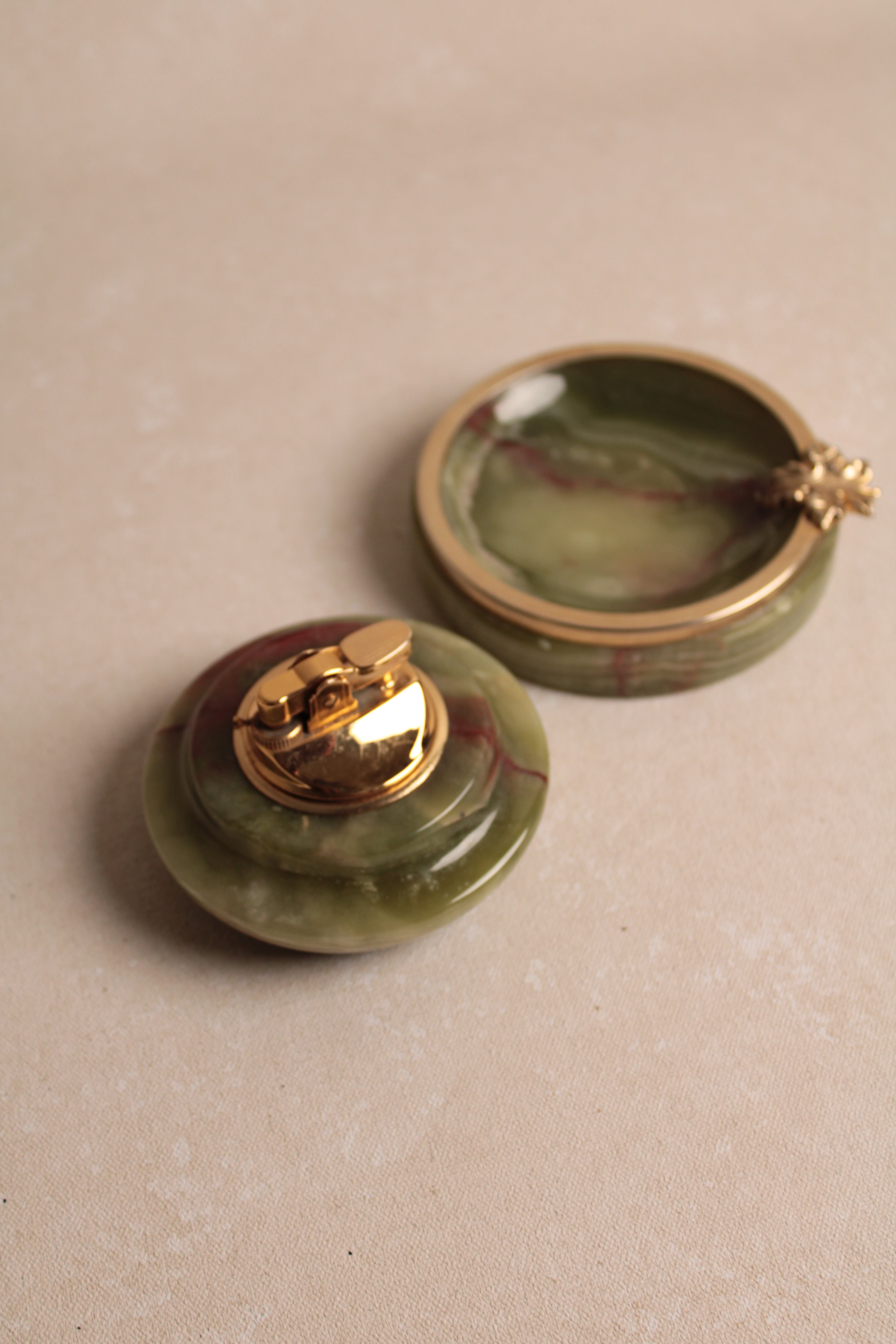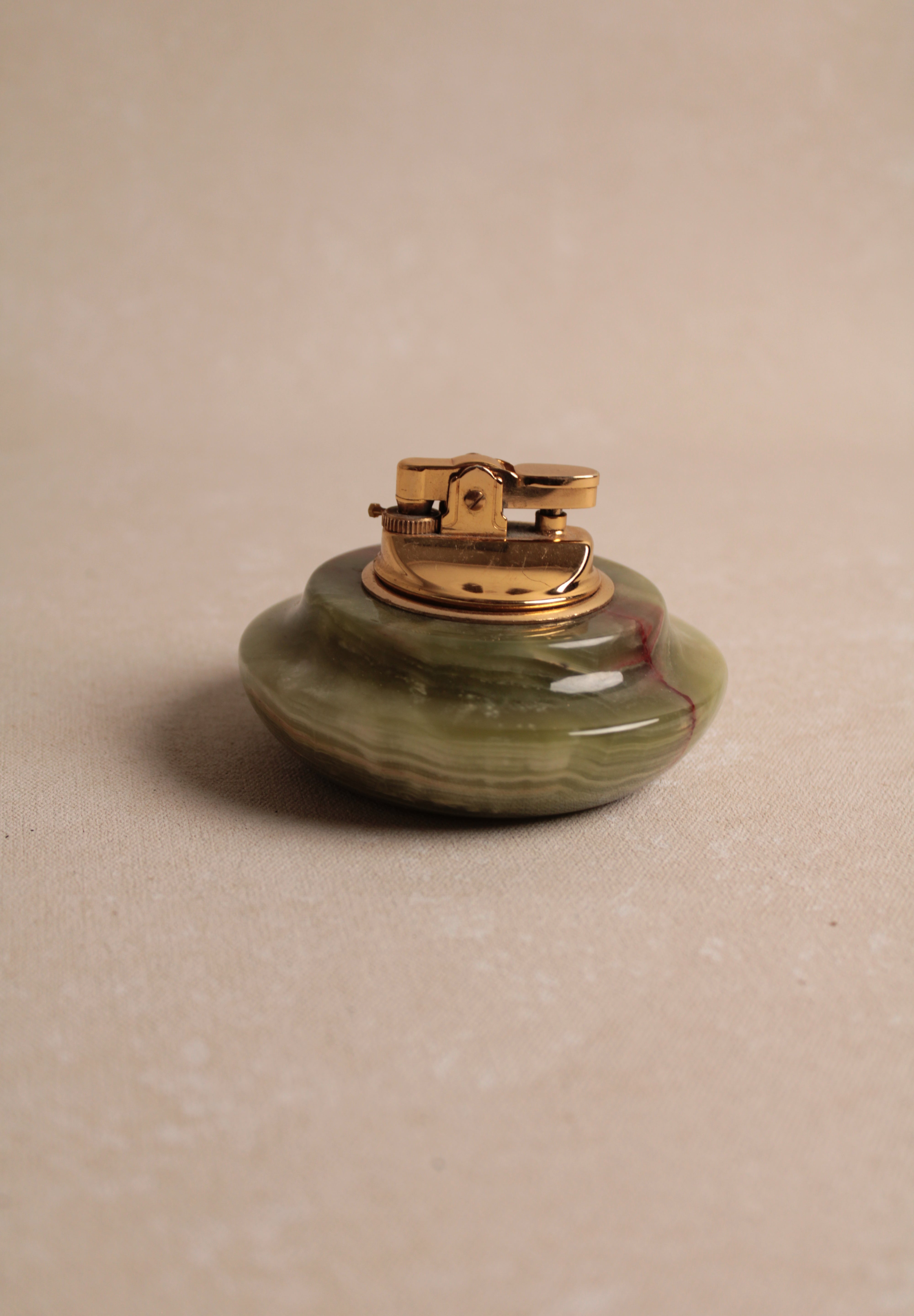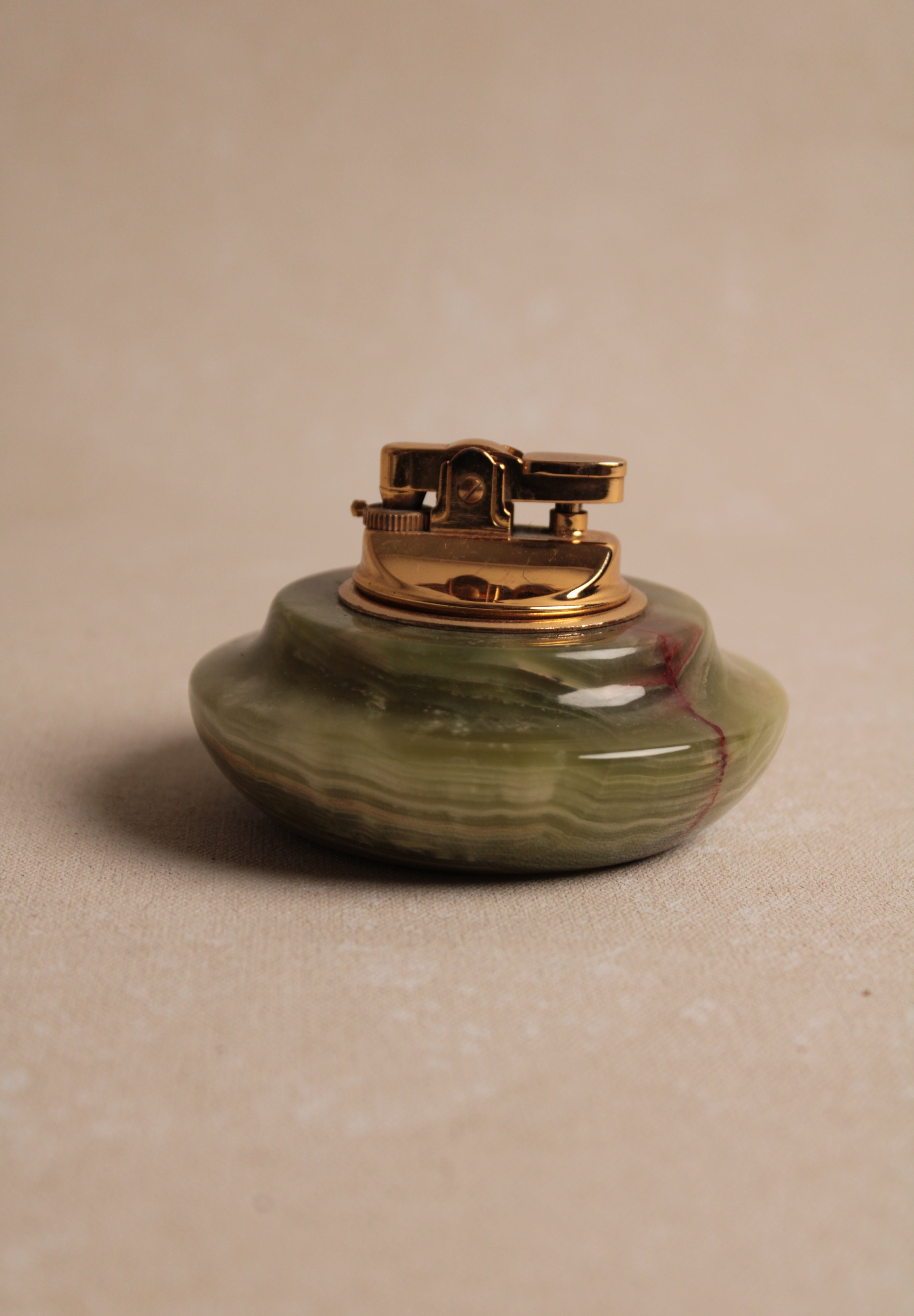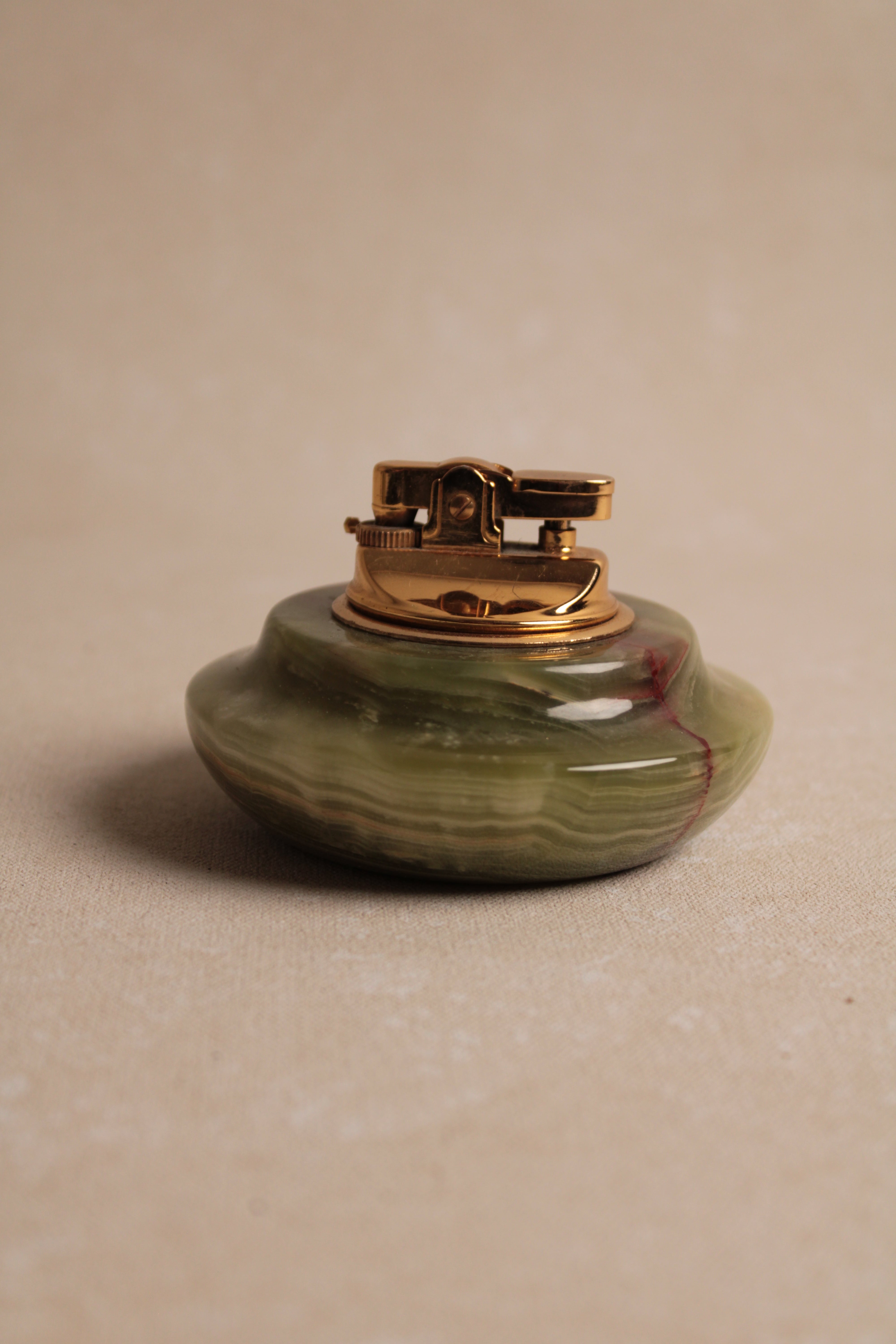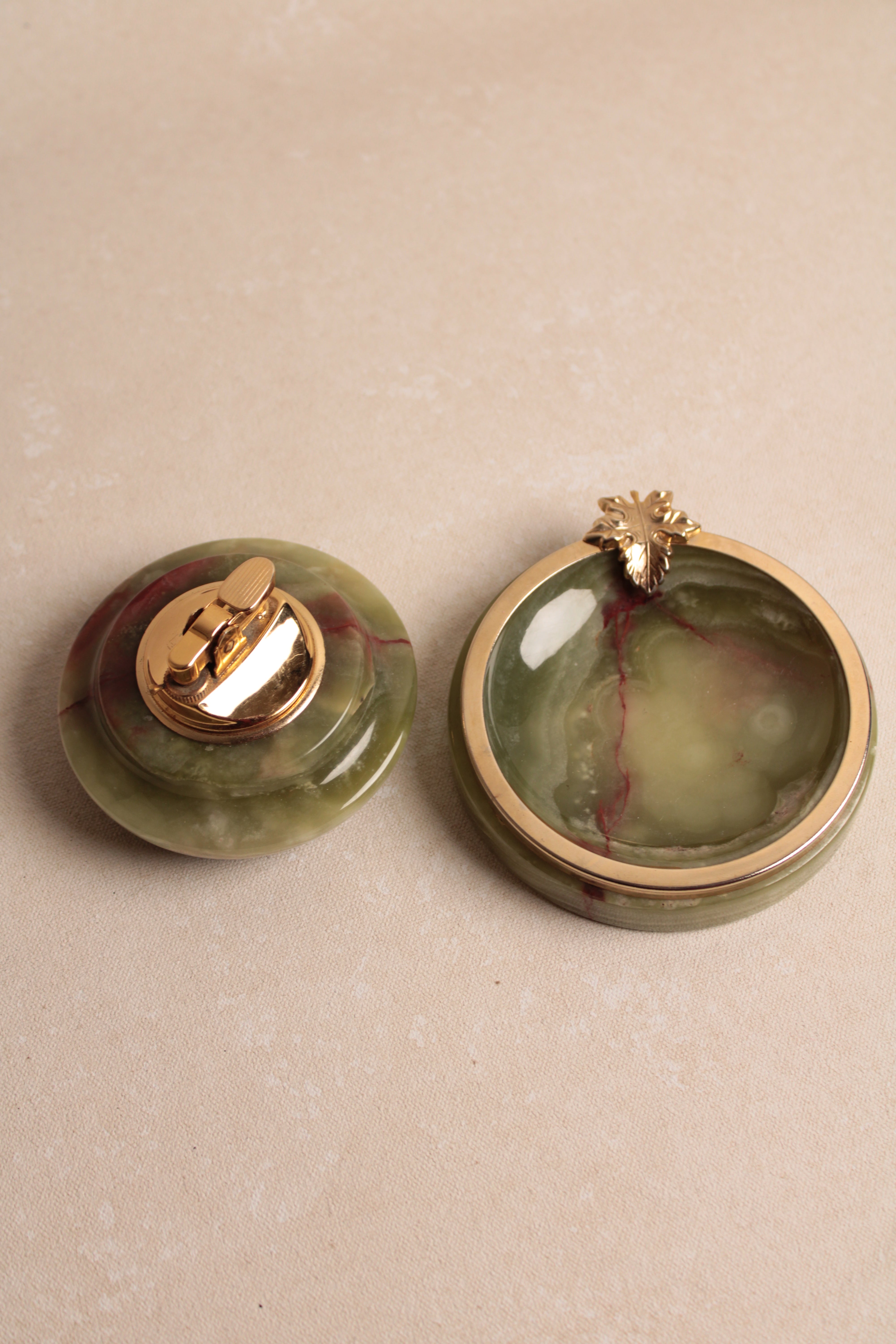 French Vintage Onyx Table Lighter & Matching Ashtray|1970