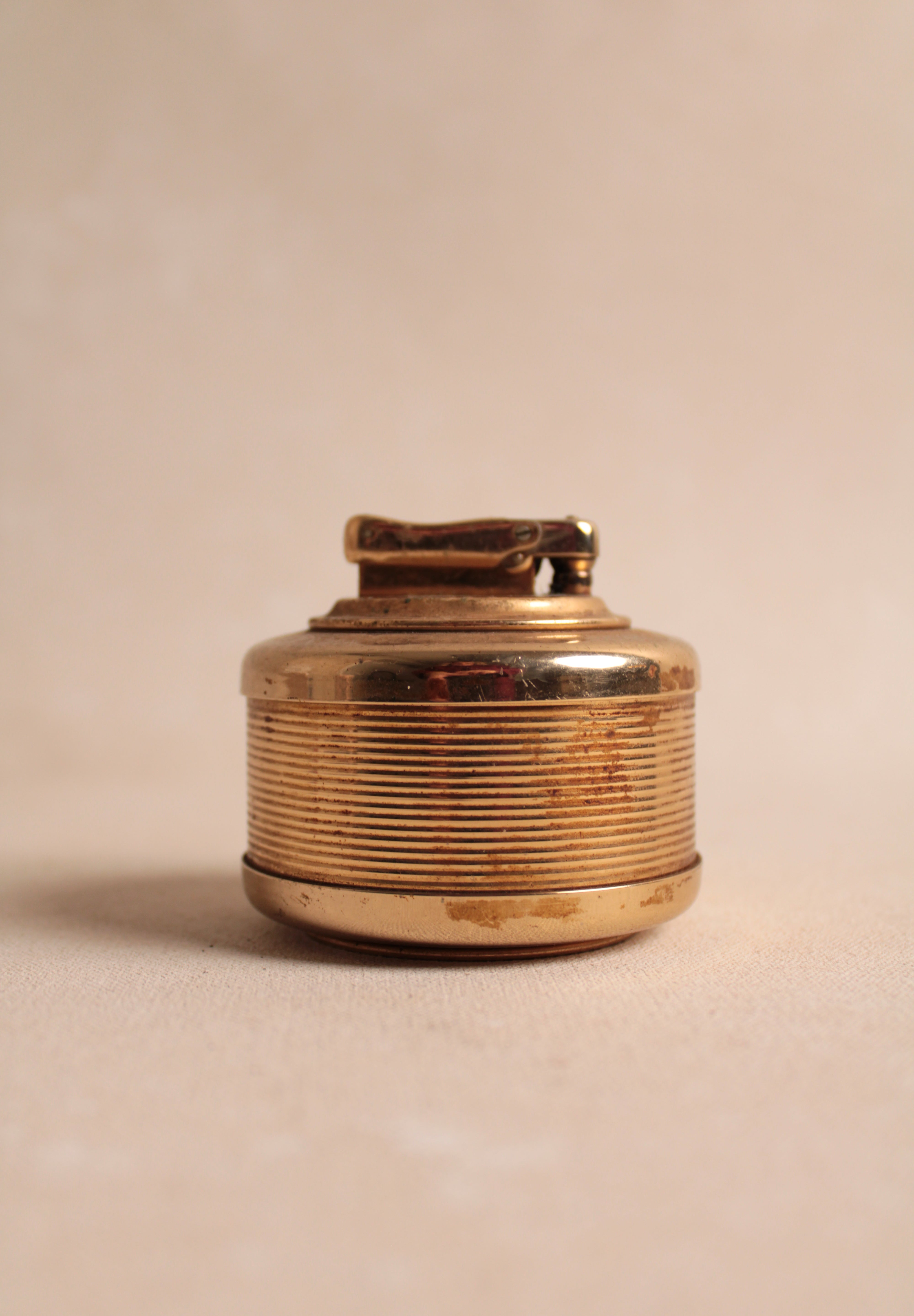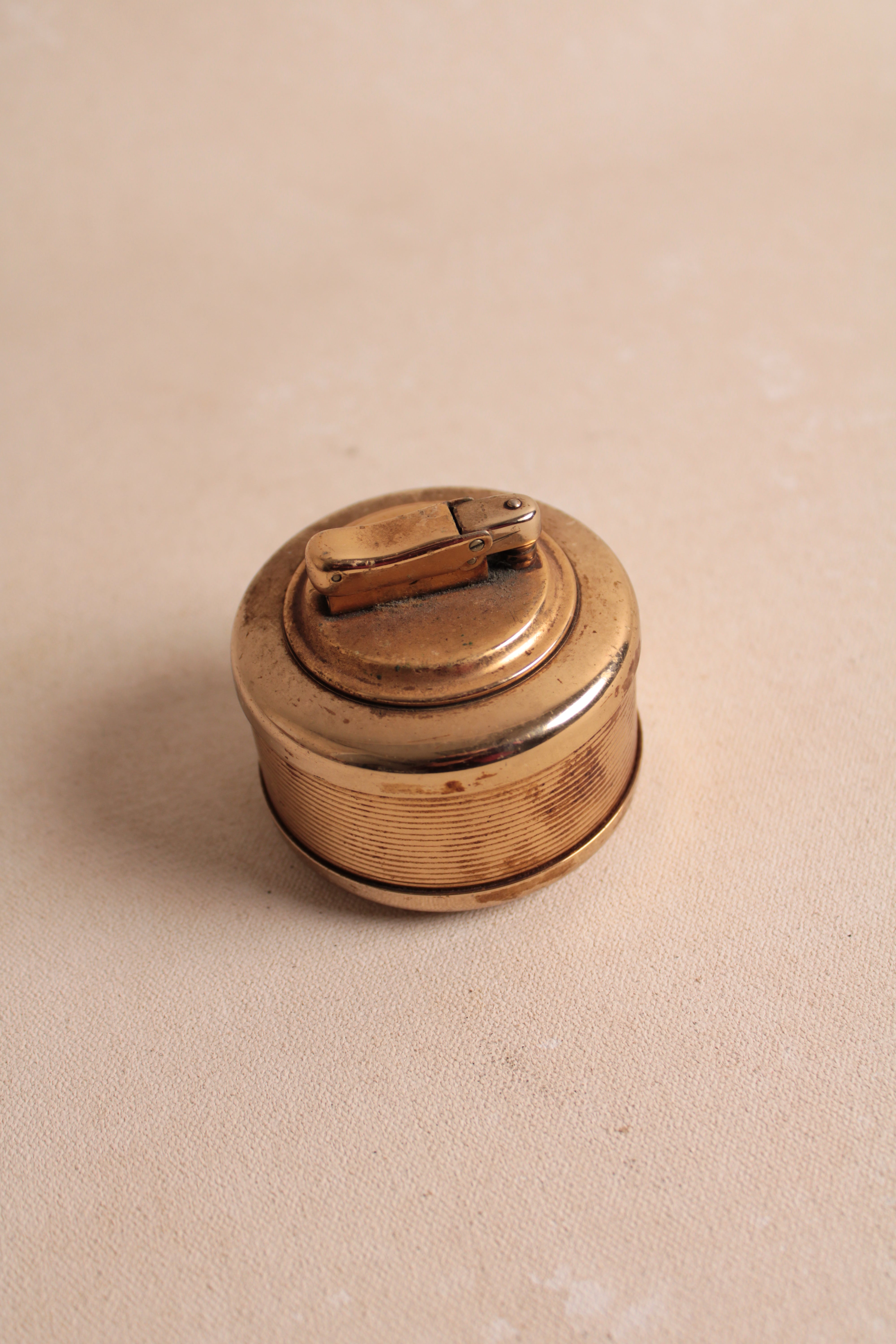 A distinguished vintage table lighter by Calibri Kreisler, rendered in lustrous gold and exemplifying the refined craftsmanship of European lighter manufacturing. This desktop accessory combines functional reliability with aesthetic sophistication, featuring the precision engineering and attention to detail characteristic of the Kreisler brand's reputation. The warm gold finish adds an element of understated luxury, making it an ideal accent for a desk, bar, or display shelf. Perfect for collectors of vintage smoking accessories, those who appreciate European design excellence, or anyone seeking a functional objet d'art that elevates everyday spaces with timeless elegance. A remarkable piece that bridges the practical and decorative, serving as both a conversation starter and a testament to the enduring appeal of mid-century craftsmanship and refined taste.