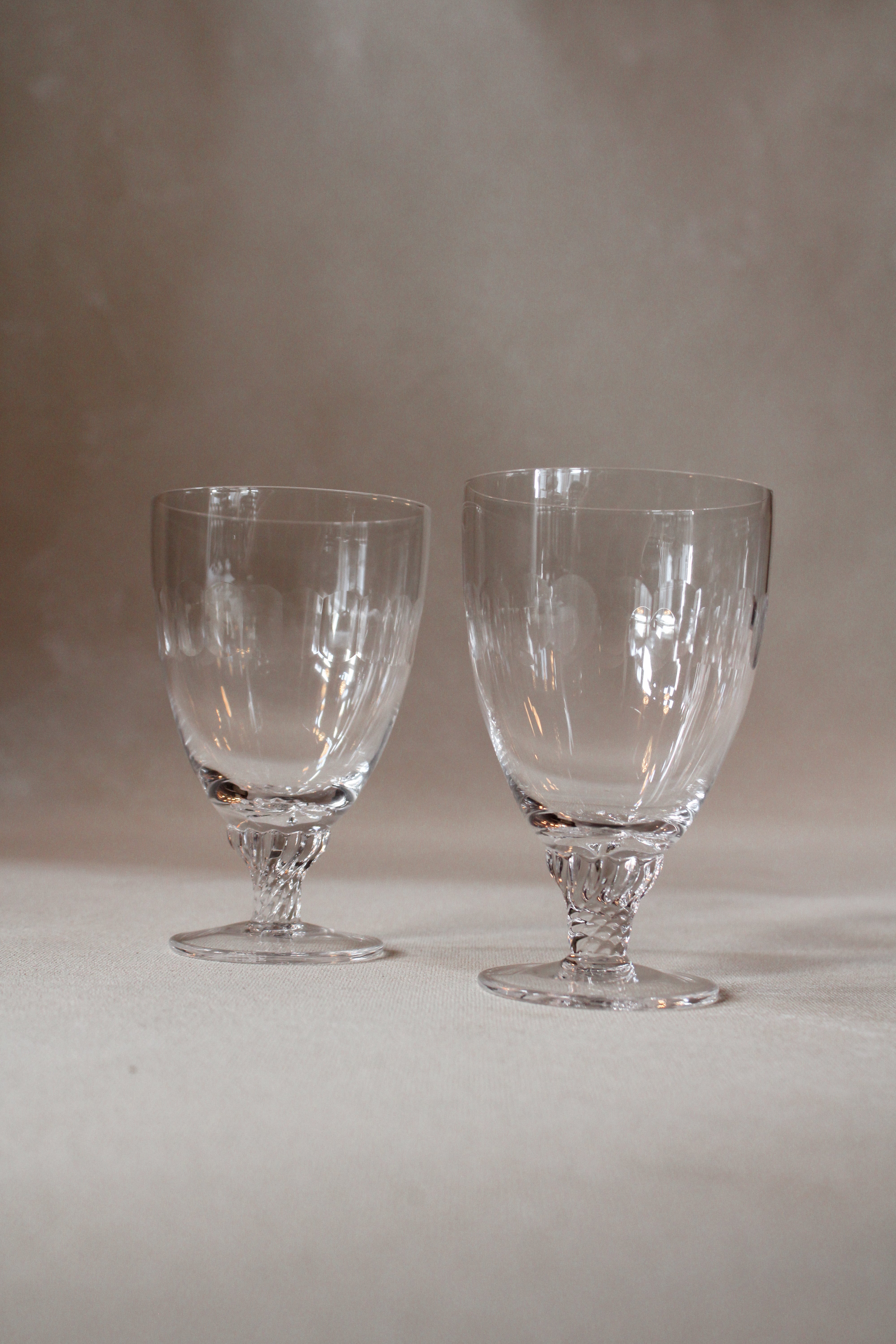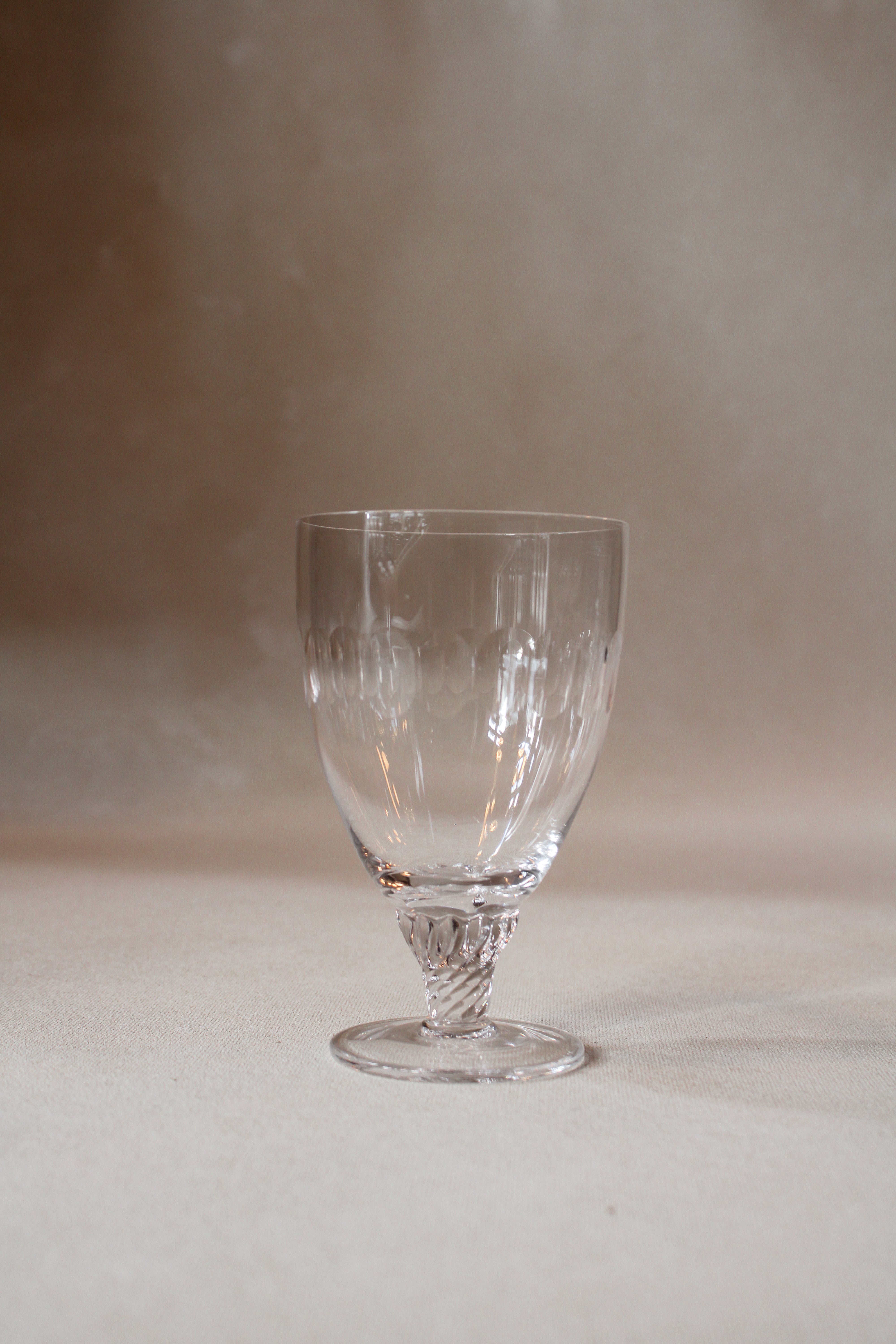 This set contains two wine glasses adorned with a delicate oval engraving. Each glass is meticulously hand-blown and hand-engraved, with a stylish short twisted stem. Made from high-quality crystal glass, these glasses offer both striking elegance and lasting strength, and they are safe to clean in the dishwasher.