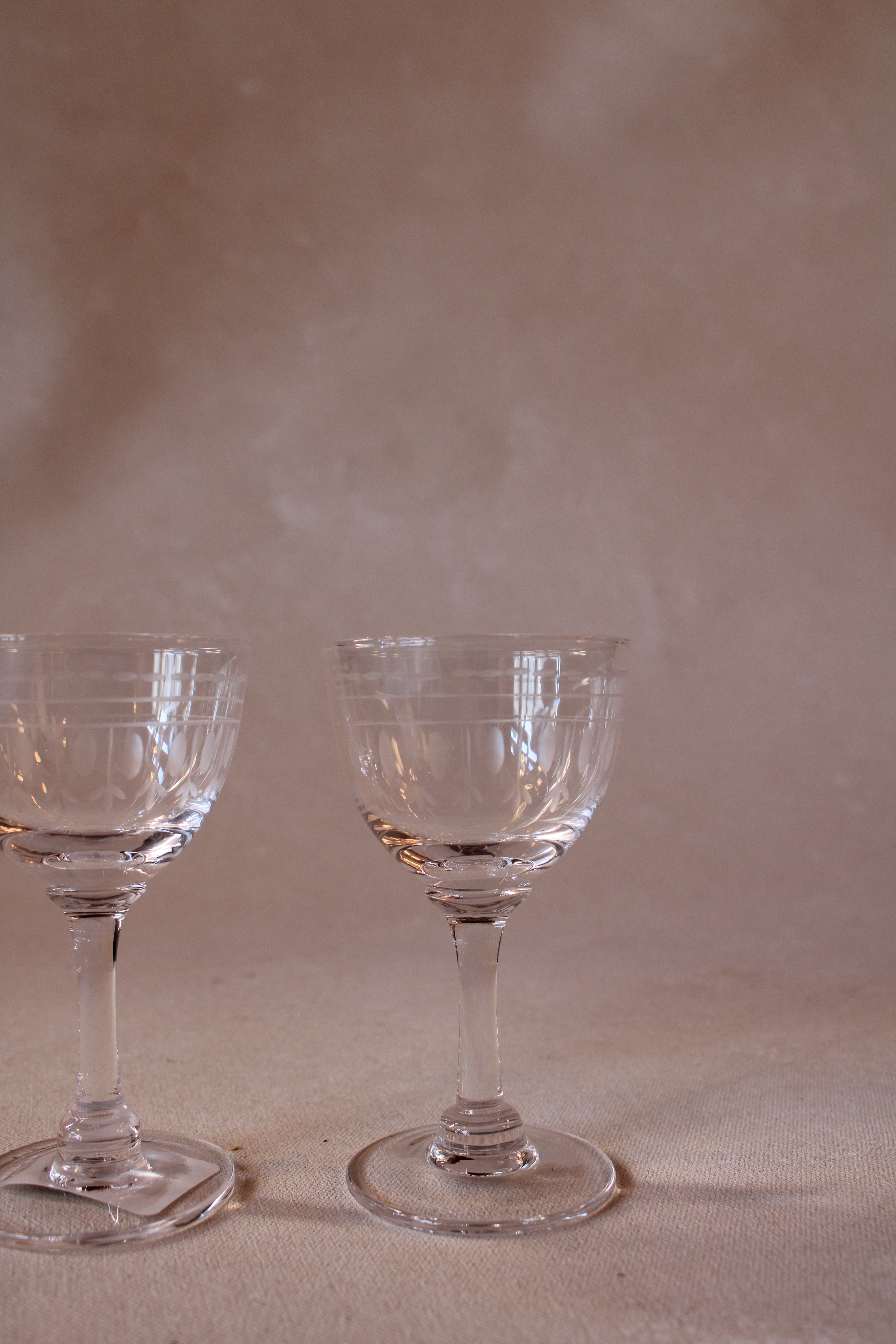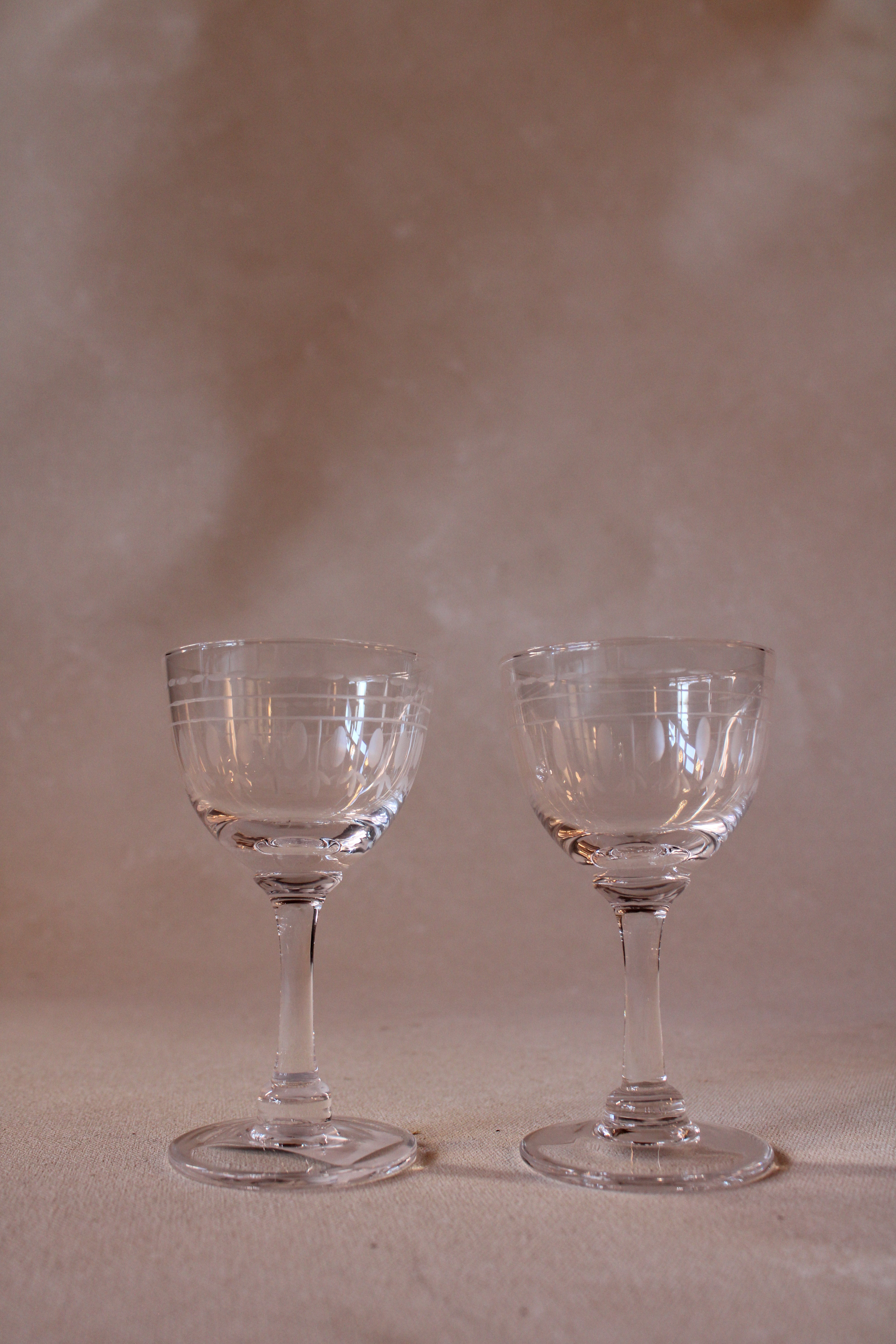 A Pair of Crystal Liqueur Glasses with Ovals Design
