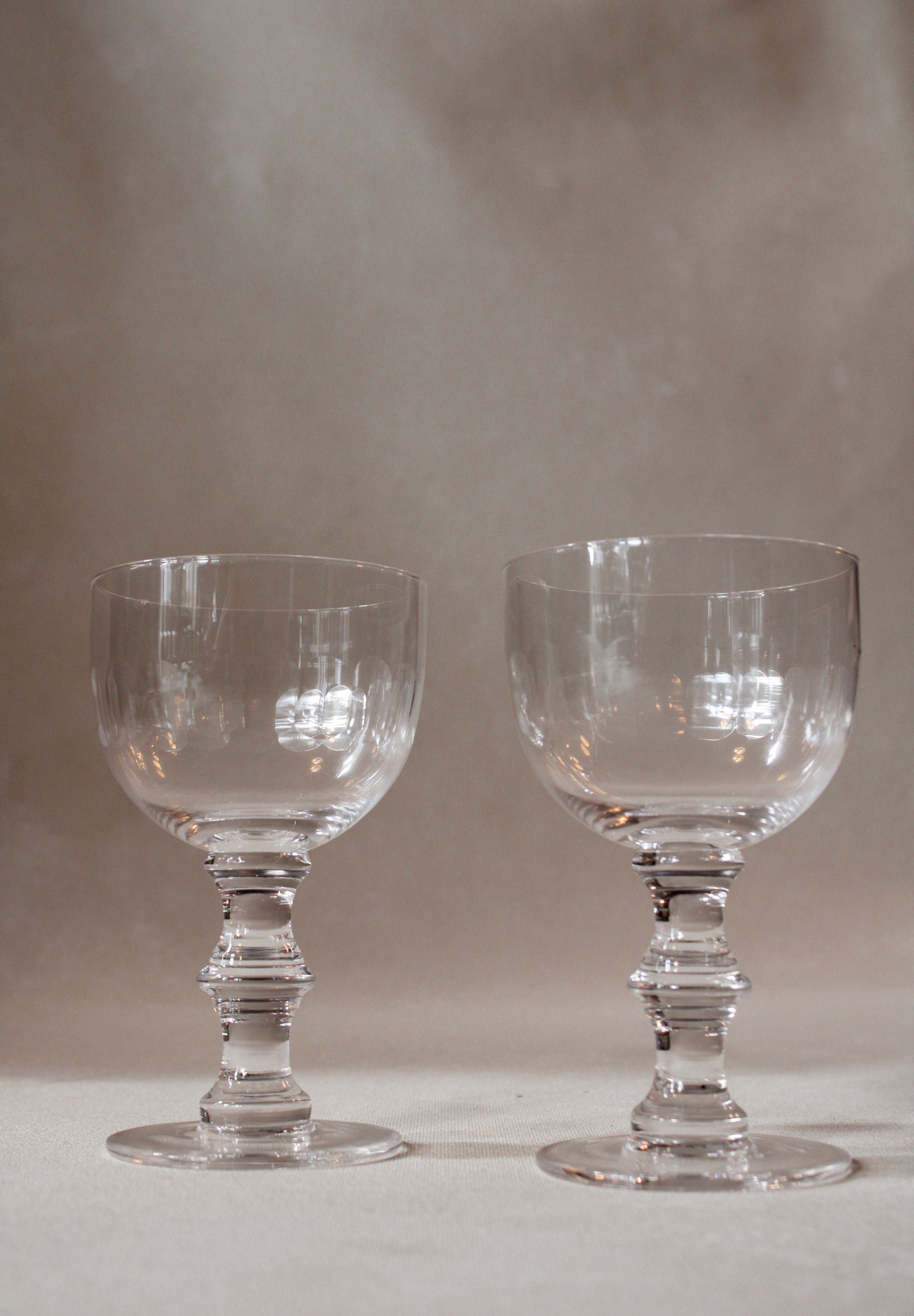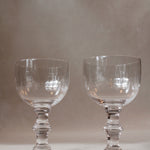 This set features two wine goblets decorated with a hand-cut oval band. Each piece is carefully hand-blown and hand-engraved, crafted from high-quality crystal glass. Durable and elegant, these wine glasses are also dishwasher safe for convenient cleaning.