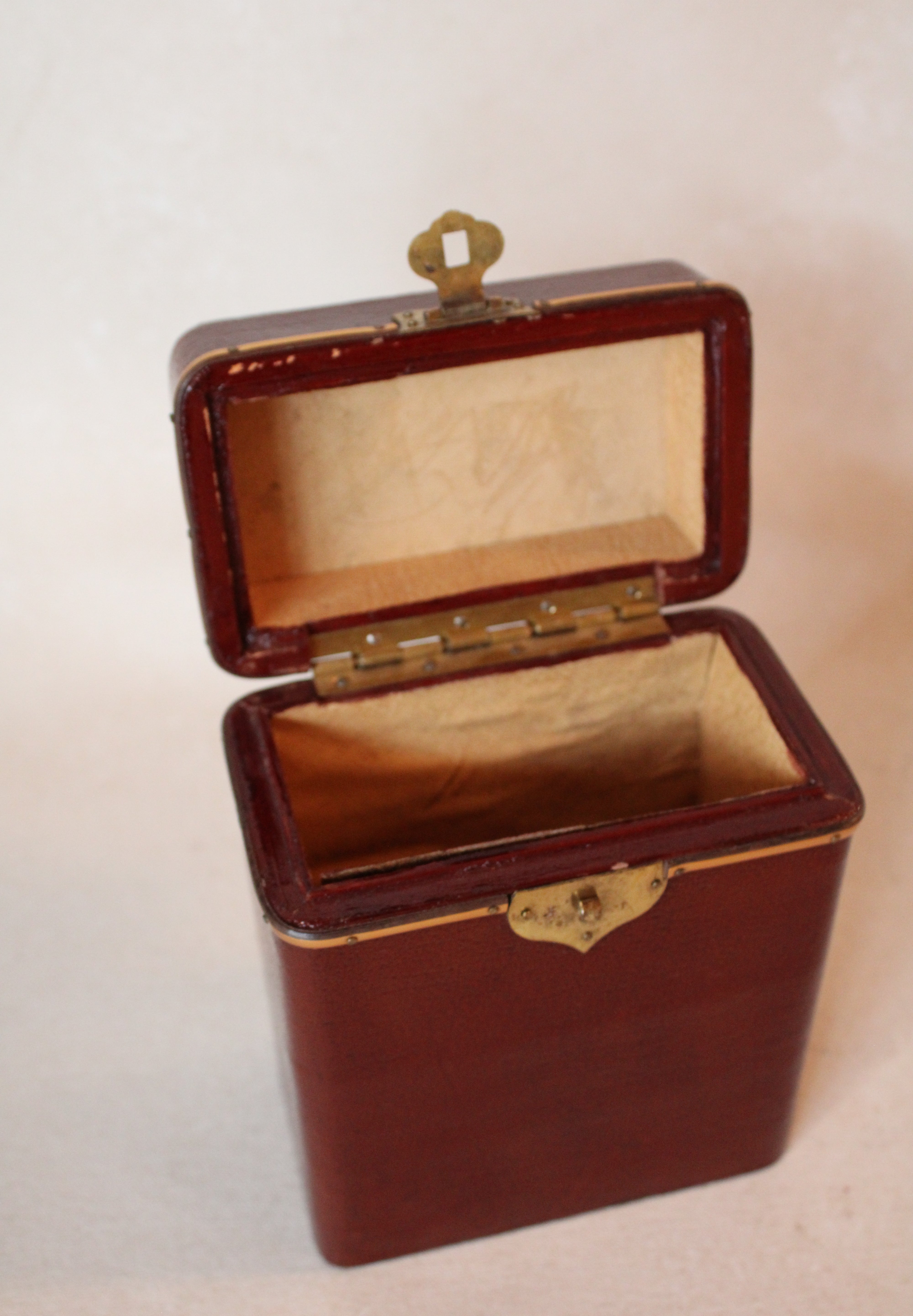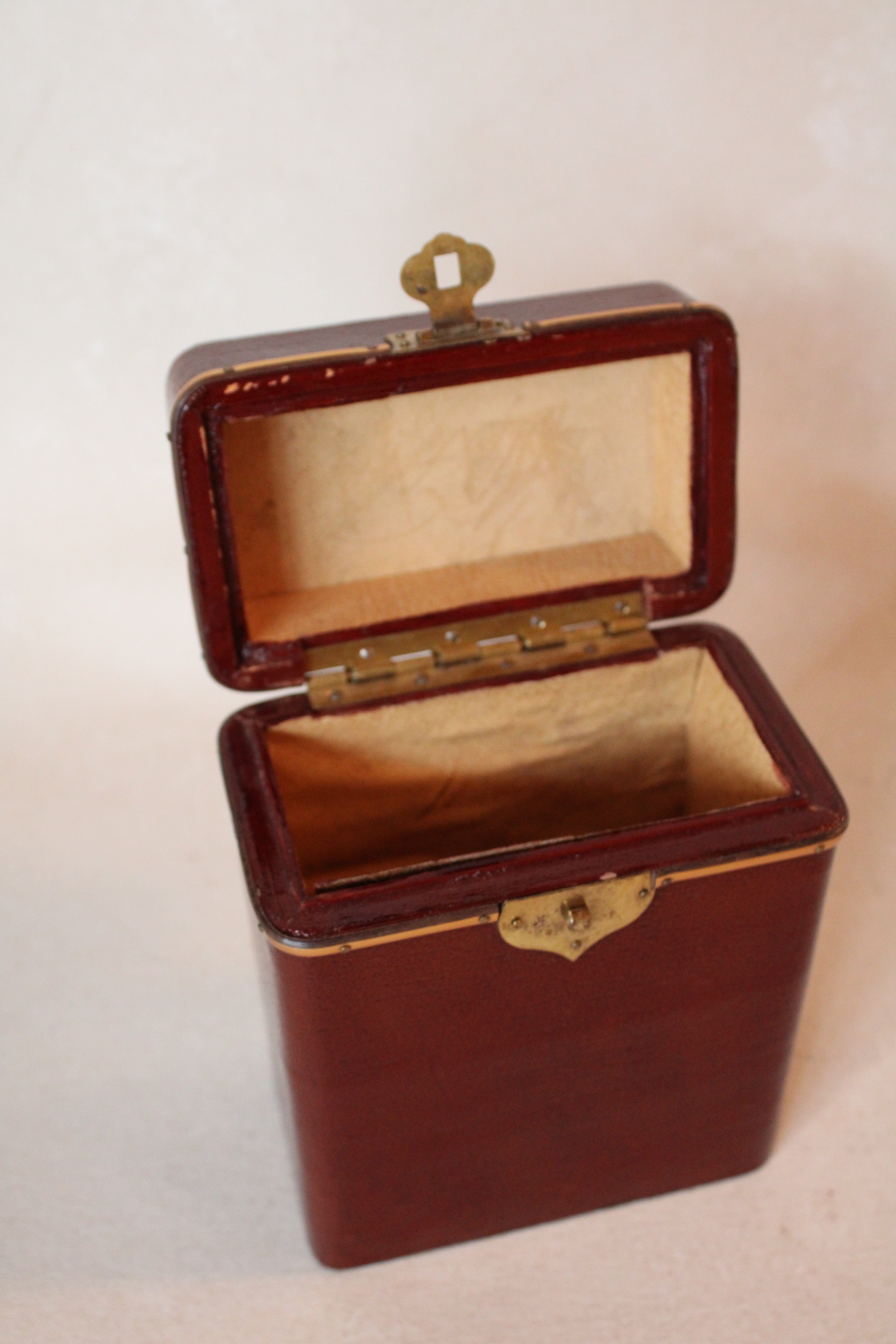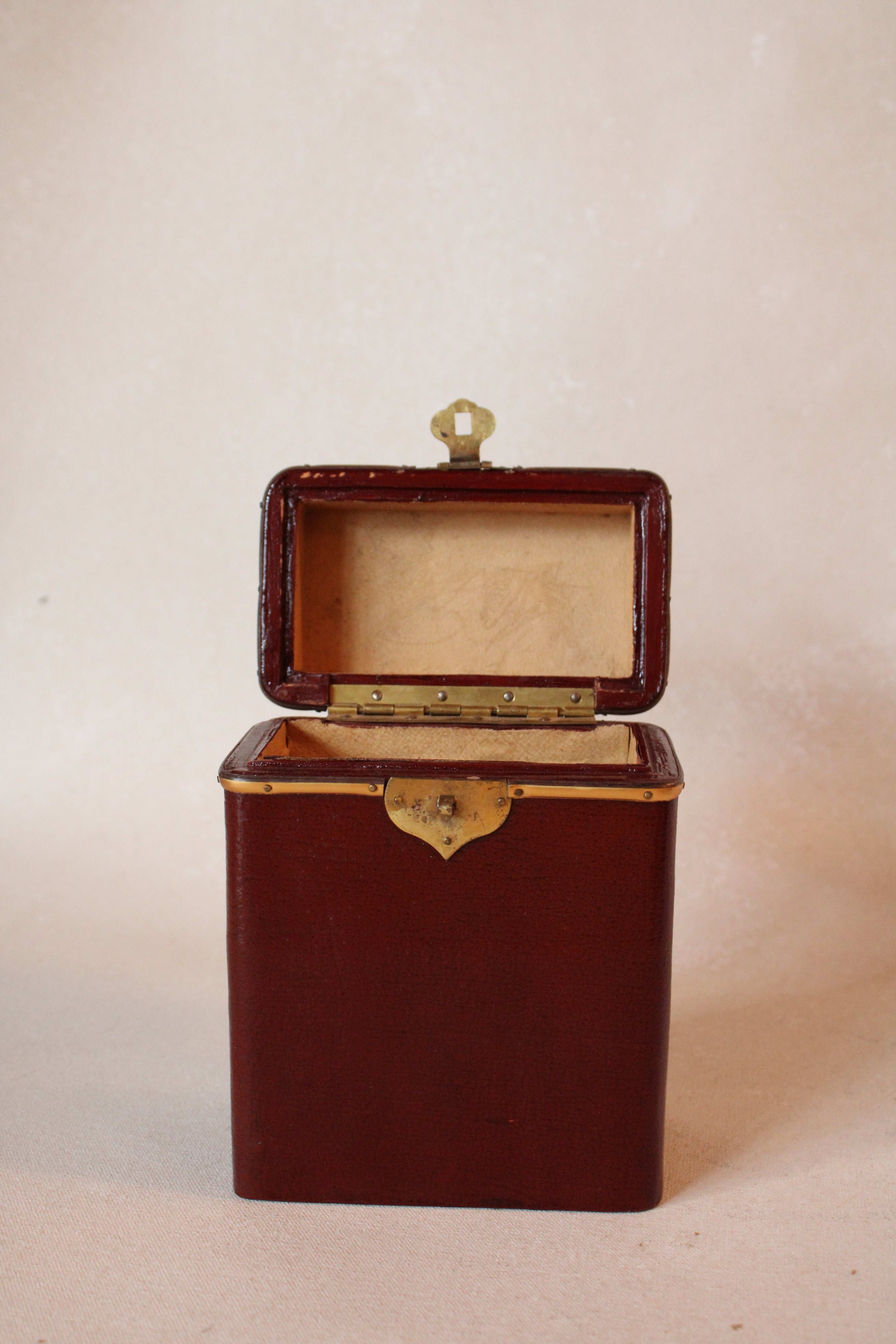 Discover the timeless charm of this Antique English Leather Box, a distinguished piece that speaks to heritage and craftsmanship. Constructed from genuine leather with authentic patina, this box bears the hallmarks of traditional English design and meticulous attention to detail. Its rich, aged finish develops character over time, making each piece uniquely personal. Ideal for storing treasured keepsakes, jewelry, correspondence, or collectibles, this versatile box serves as both functional storage and a striking decorative accent. The sturdy construction ensures durability for generations to come, while its elegant proportions make it equally at home on a library shelf, bedroom dresser, or study desk. A refined investment for those who value quality, history, and the enduring appeal of authentic vintage craftsmanship.