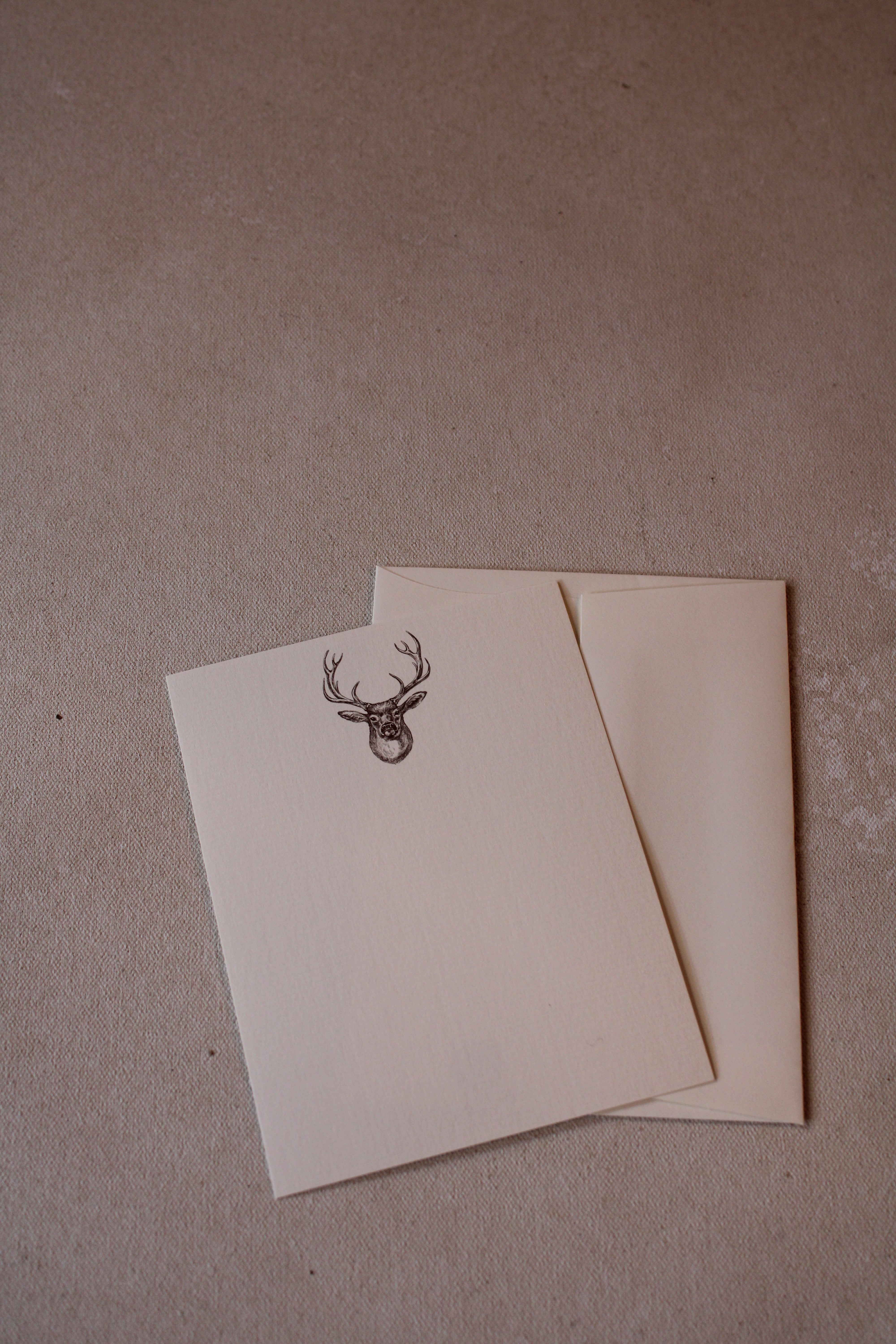 Convey your messages with sophistication using these Deer A2 Notes. The hand-drawn majestic deer design is flat printed with eco-friendly, soy-based ink on premium USA-made Ecru textured Laid 80# Cover stock paper. Each piece is thoughtfully designed and printed in New Orleans..