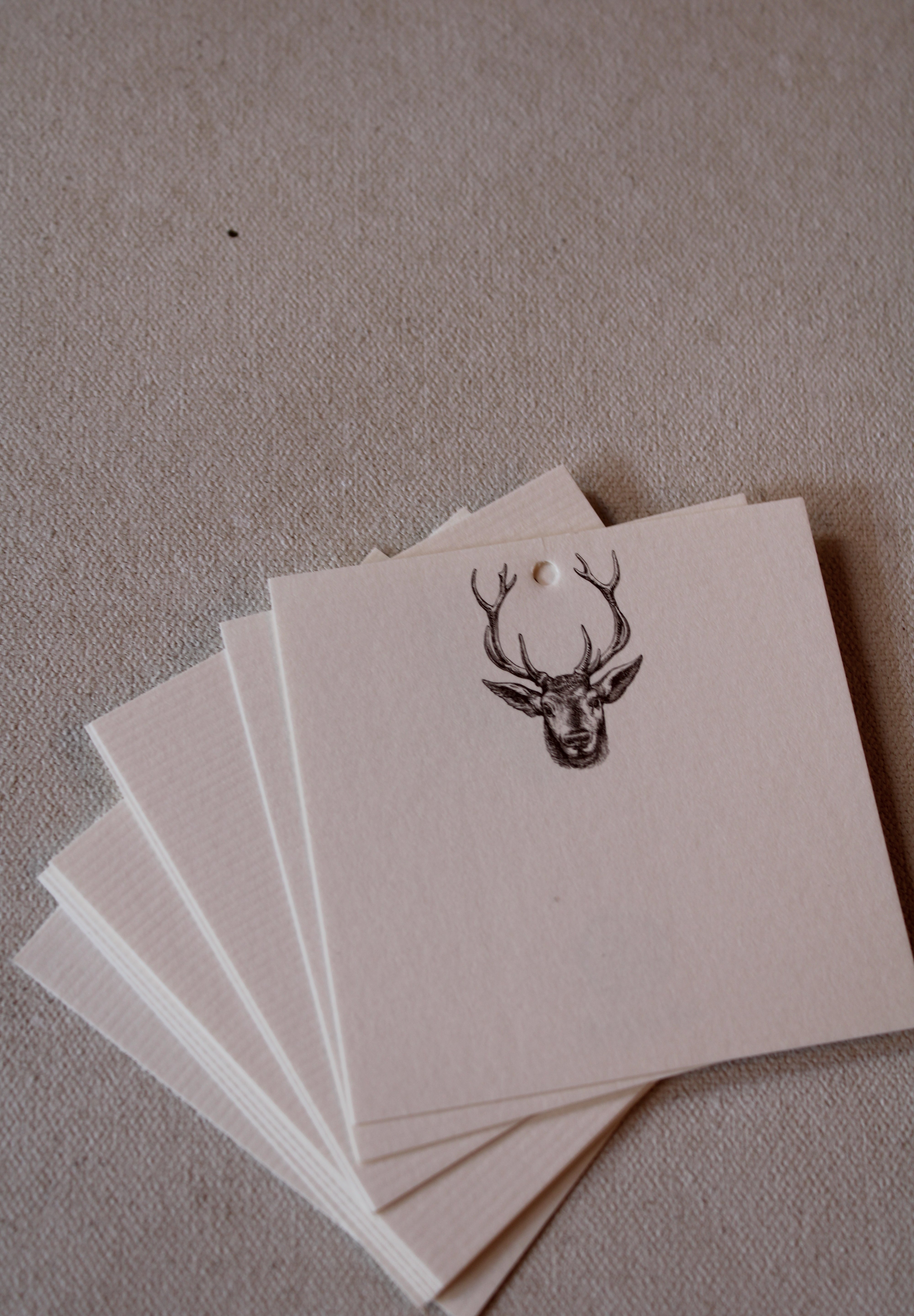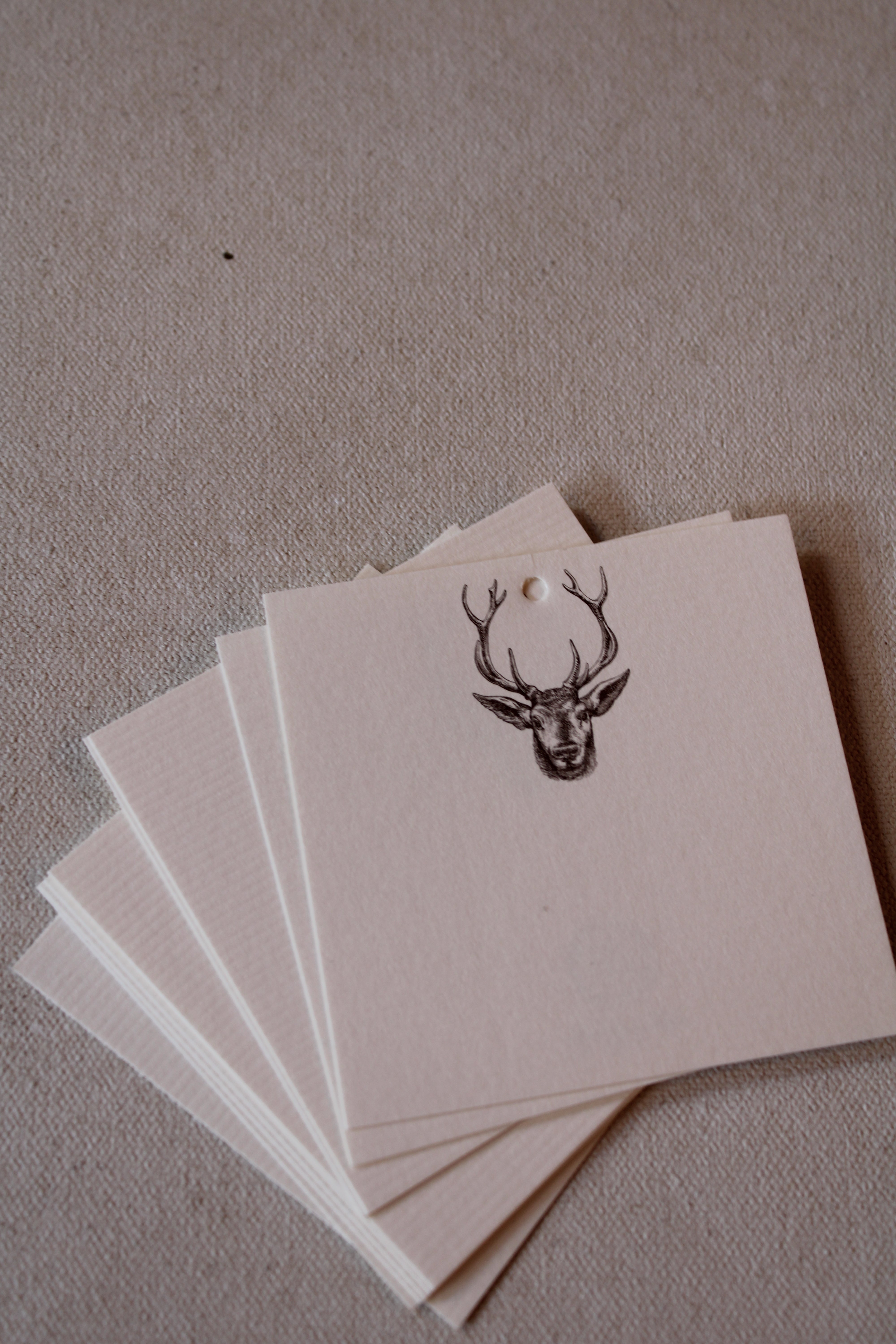 Keep the tradition of elegant gift giving alive with these charming Deer Gift Tags. Featuring hand-drawn illustrations, they are flat printed using eco-friendly soy-based ink on premium USA-made Ecru textured Laid 80# Cover Stock. Each tag includes a ⅛” hole for easy ribbon attachment. Designed and proudly printed in New Orleans, these tags add a thoughtful touch to any package.