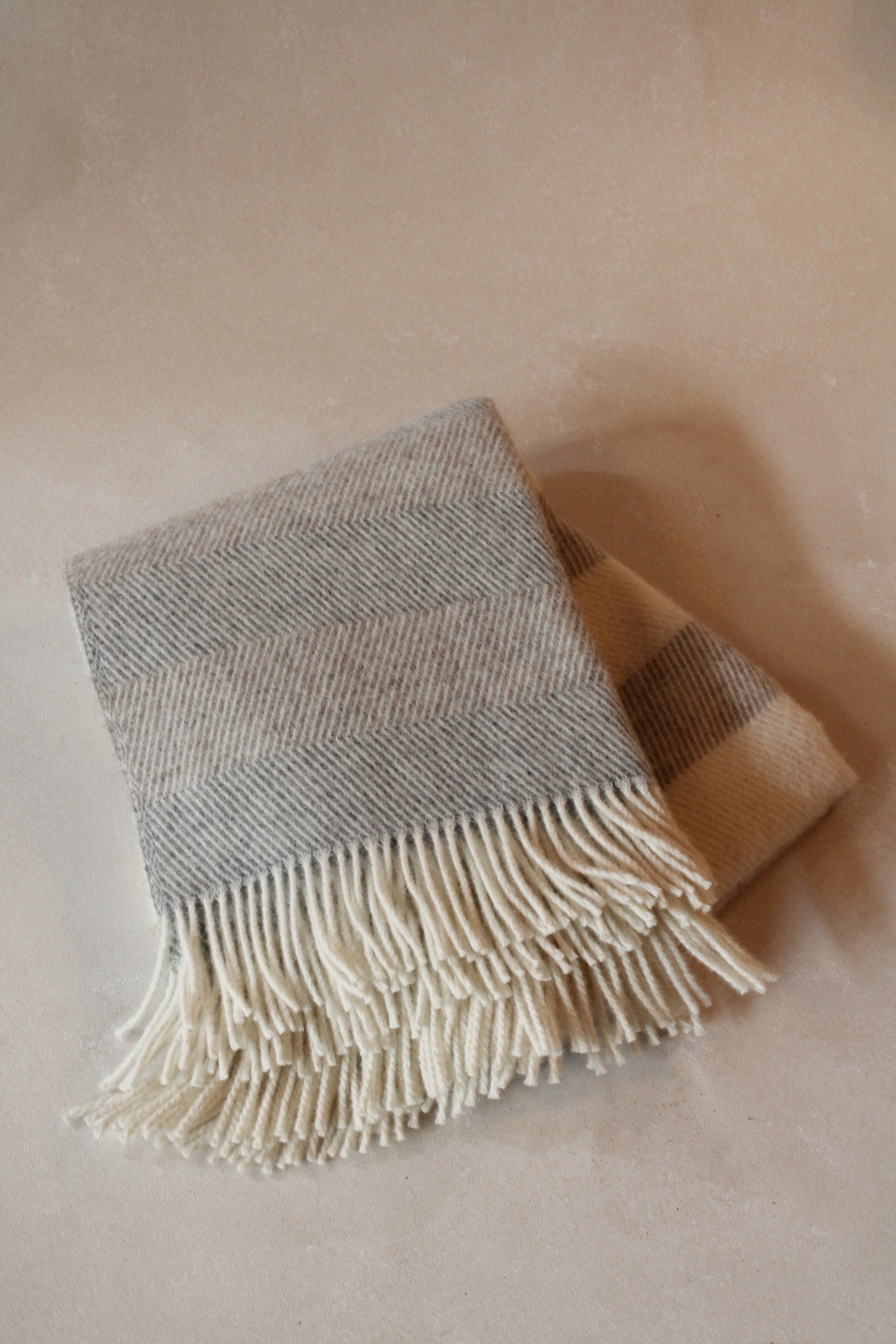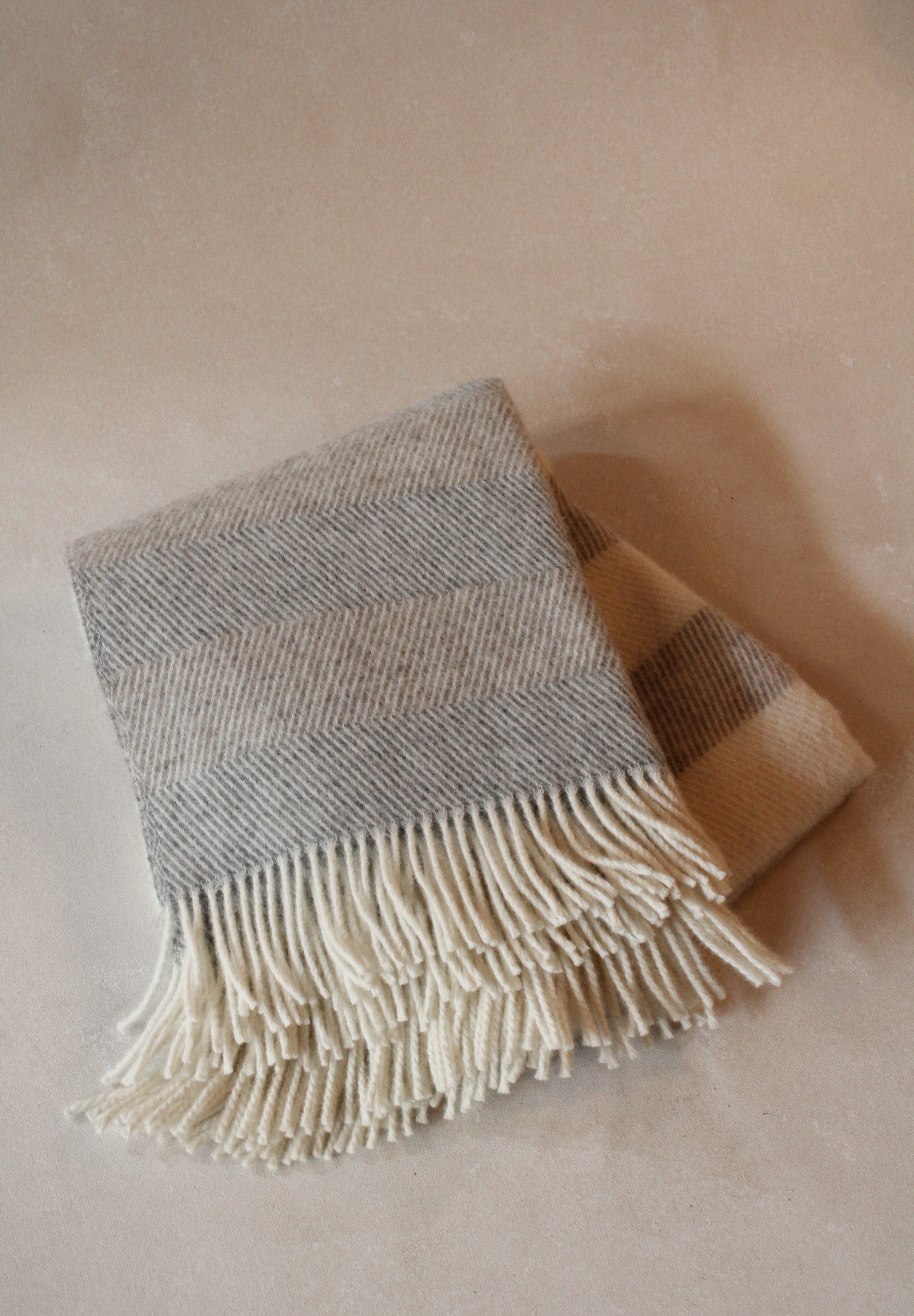 Soft Grey, Beige and Off-White | 130 x 190 cm (51 x 75 in) | 100% Pure New Wool | Machine Washable | Fully Reversible